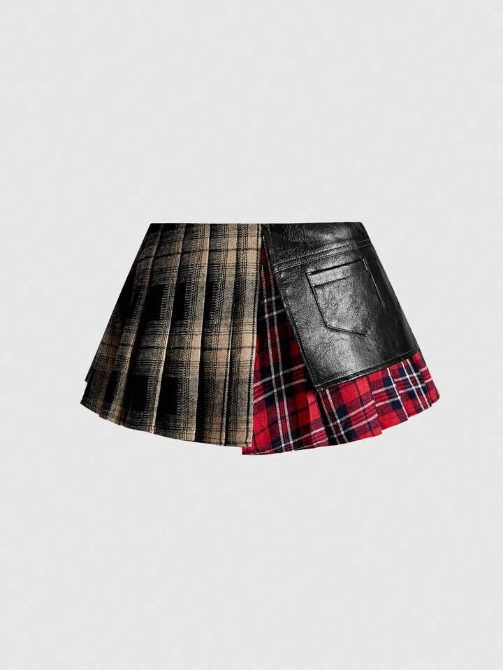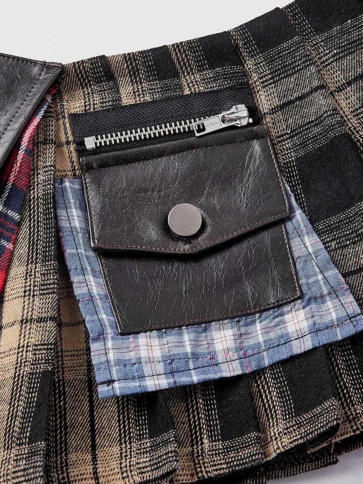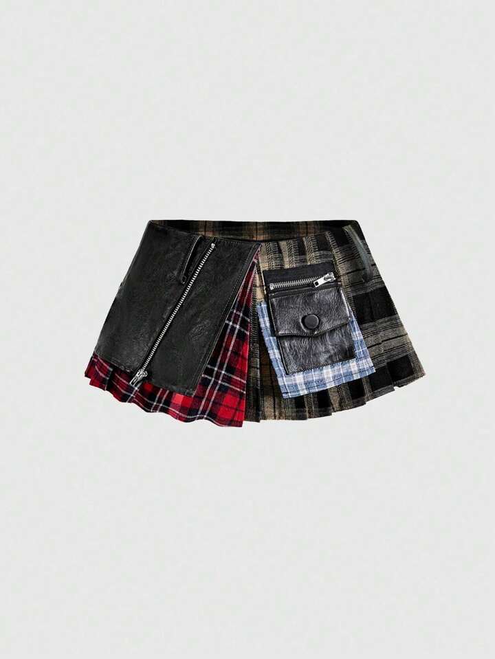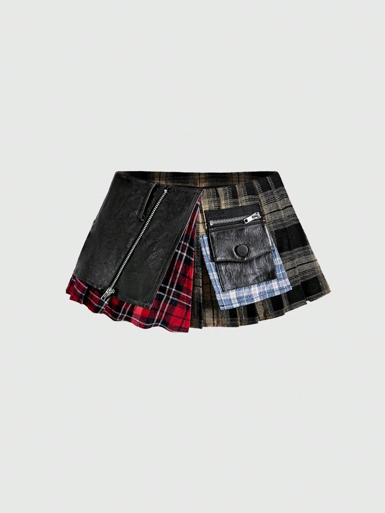 Grunge Punk Jupe asymétrique à carreaux et patchwork pour femmes