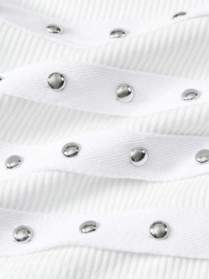 Grunge Punk Débardeur sexy sans manches et dos nu avec motif de notes de musique et ornements de rivets pour femmes. Convient pour l'été, la plage, la remise des diplômes, Pâques, les concerts et les vacances