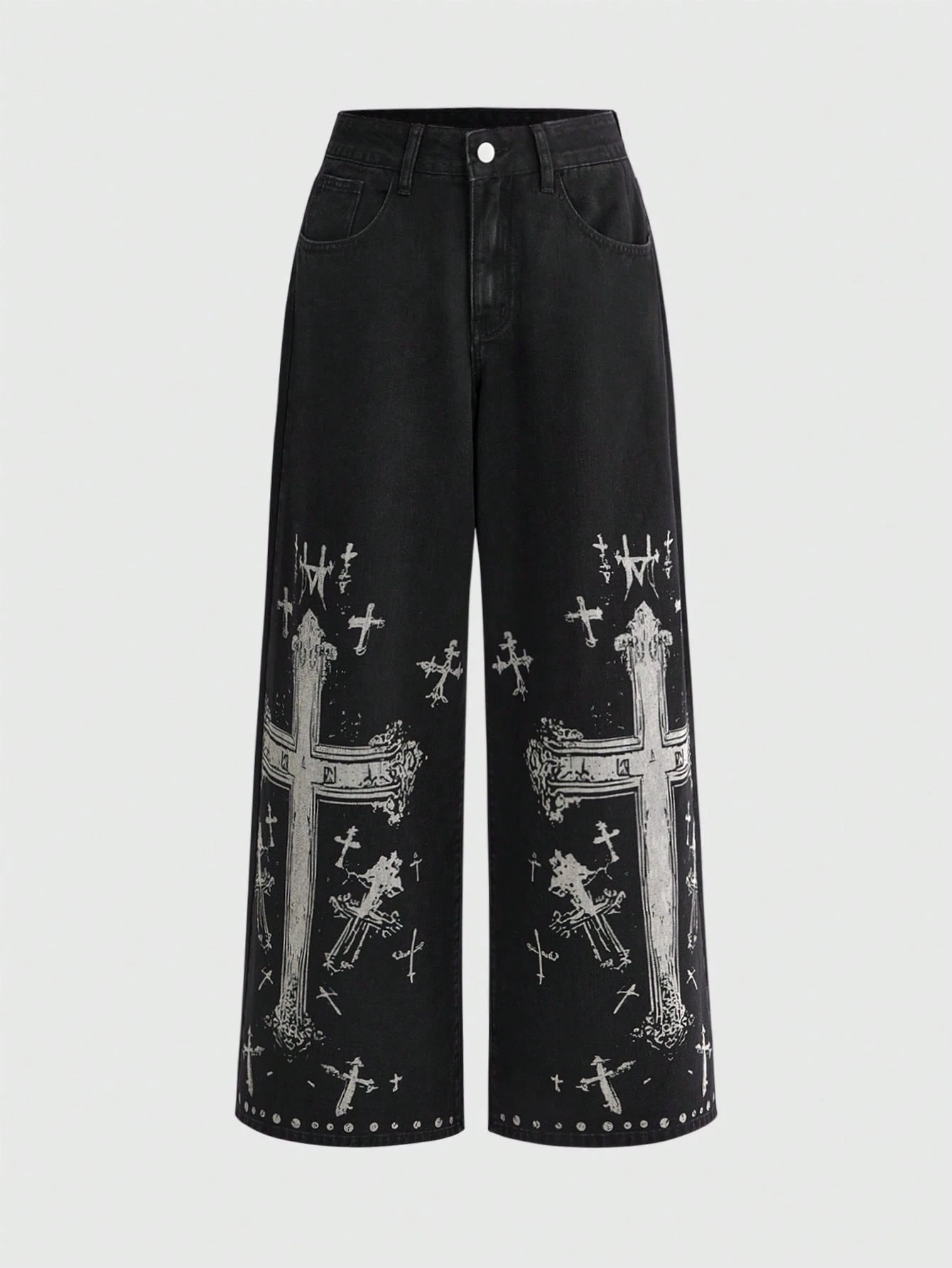 Grunge Punk Jeans droits extra longs, femmes, style punk, délavé, croisé, ample