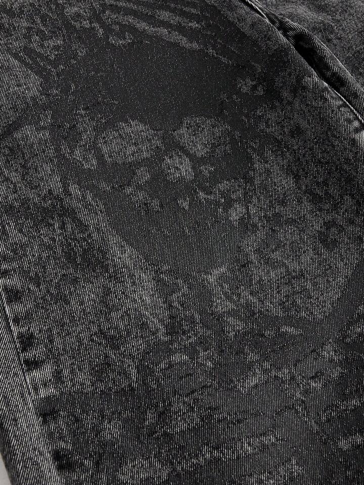 Grunge Punk Jeans à jambes larges imprimés squelettes pour femmes, jeans boyfriend scolaire
