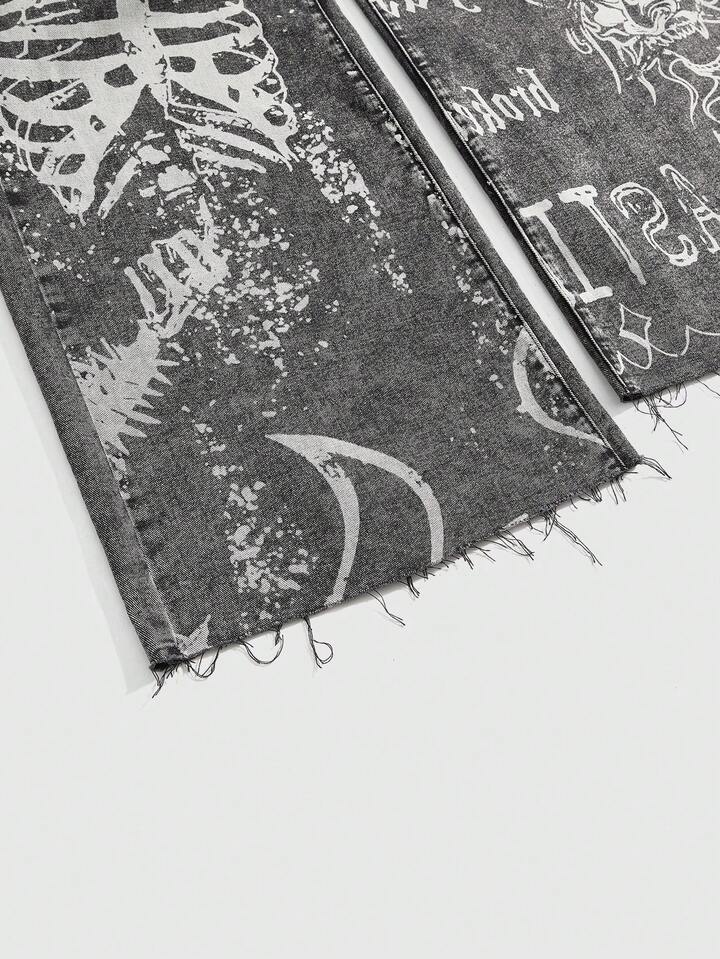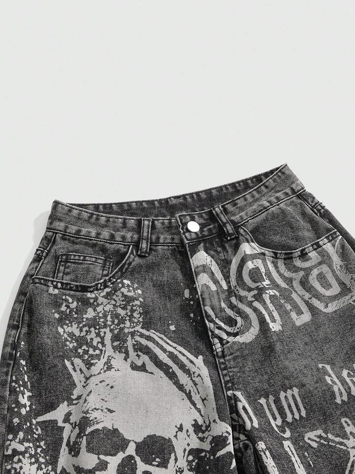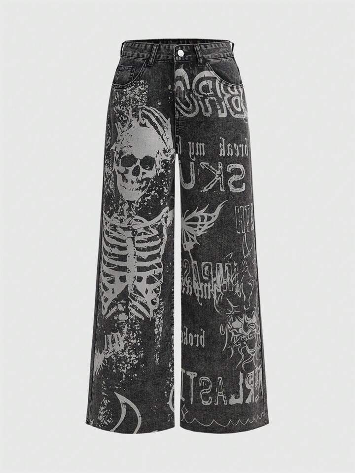 Grunge Punk Jeans évasés à imprimé squelette pour femmes, jeans boyfriend pour l'école
