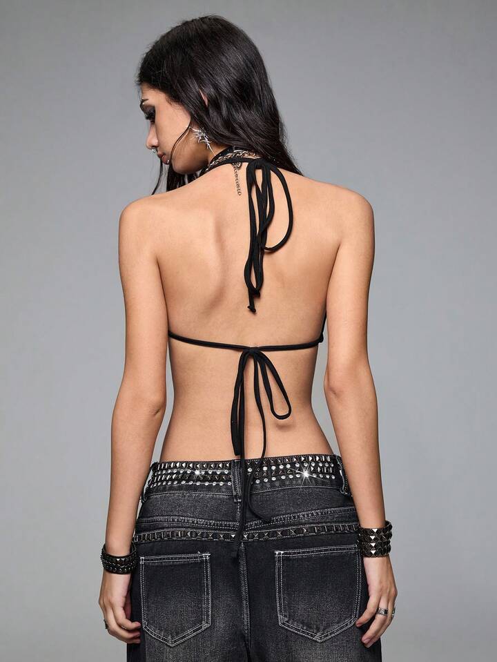 Grunge Punk Top de bikini sexy PUNK à bretelles fines sans manches avec clous pour femmes
