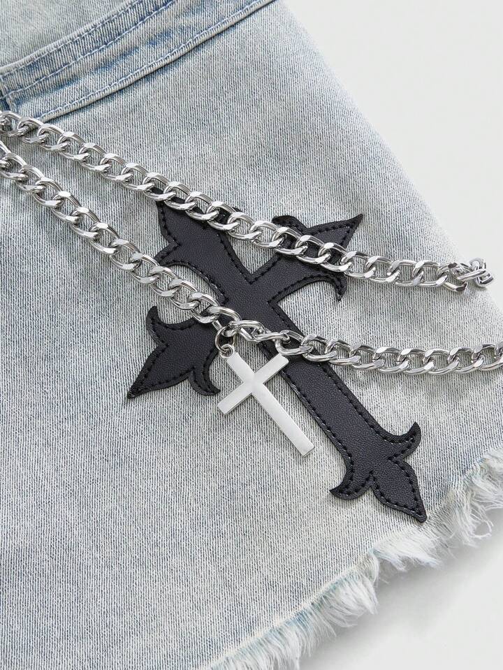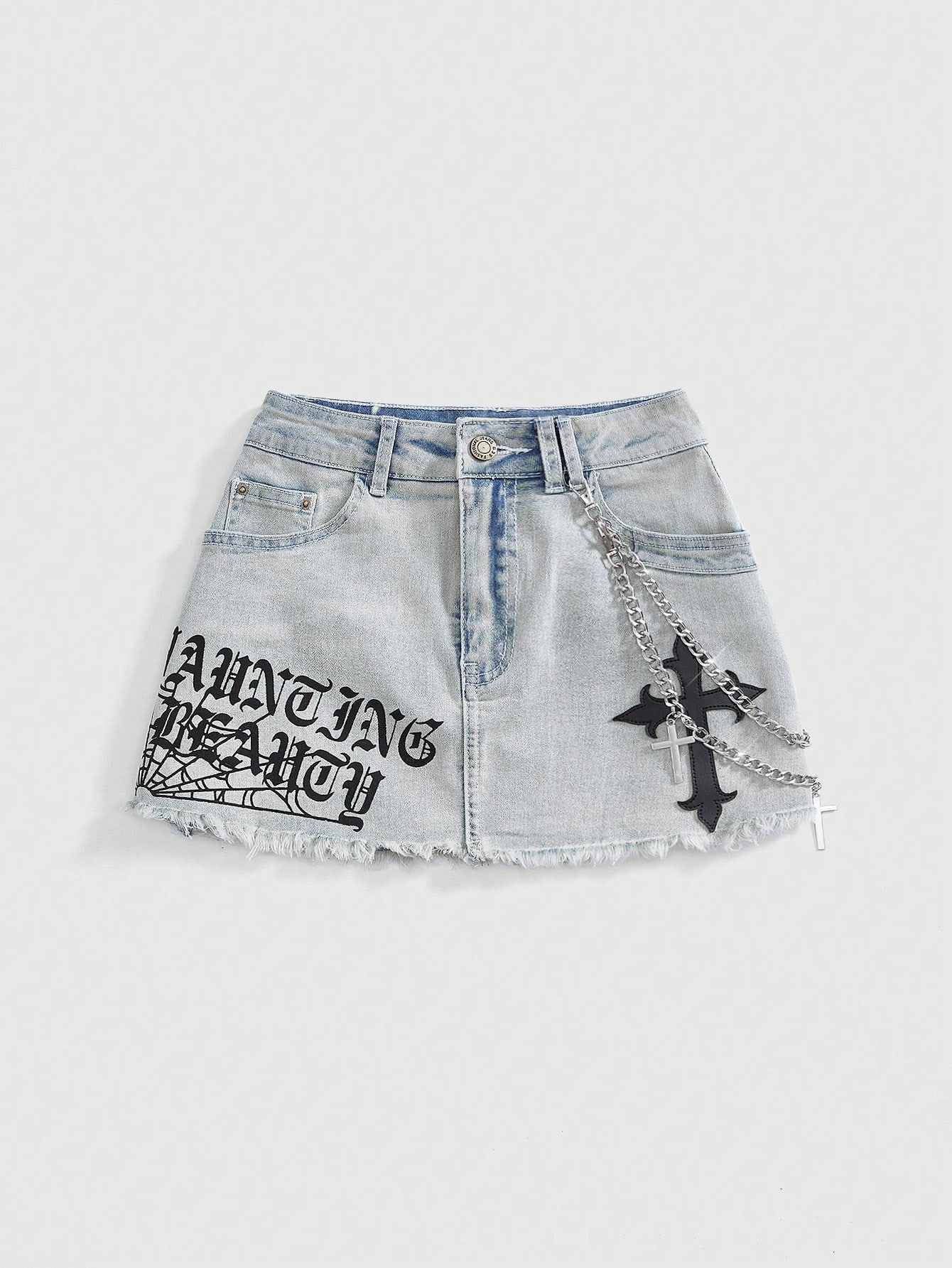 Grunge Punk Mini-jupe en jean à taille basse avec imprimé toile d'araignée et croix, slogan gothique sexy Y2K, pour festival de vacances, concert de printemps