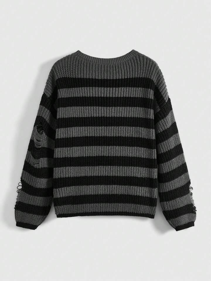 Grunge Punk Pull À Col Rond Rayé Avec Décoration D'étoiles Pour Femmes