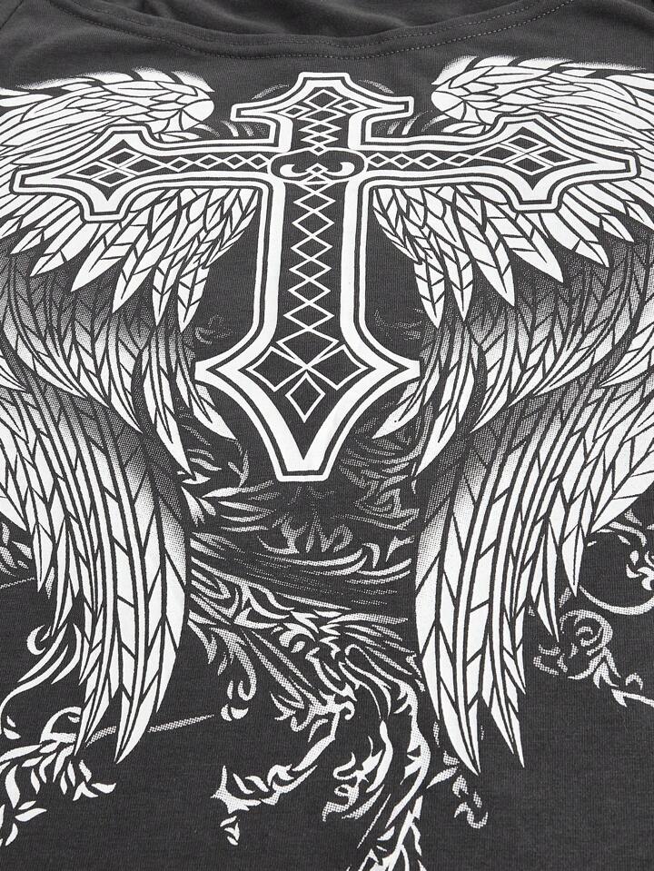 Grunge Punk T-shirt décontracté à manches courtes et épaules dénudées imprimé avec ailes croisées pour femmes, école
