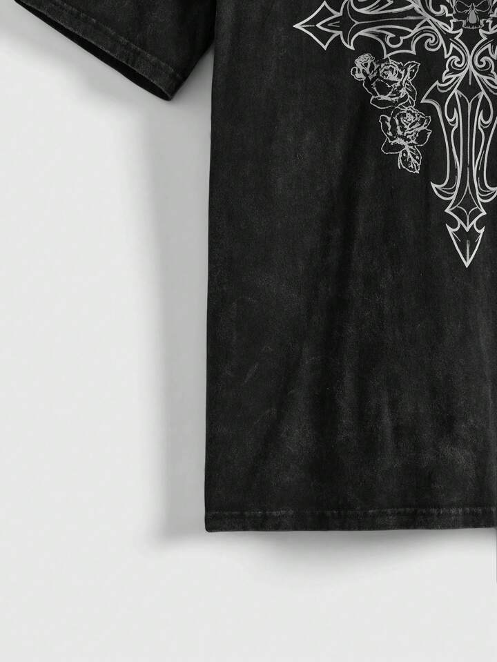 Grunge Punk T-shirt imprimé croix ailée pour femmes, école