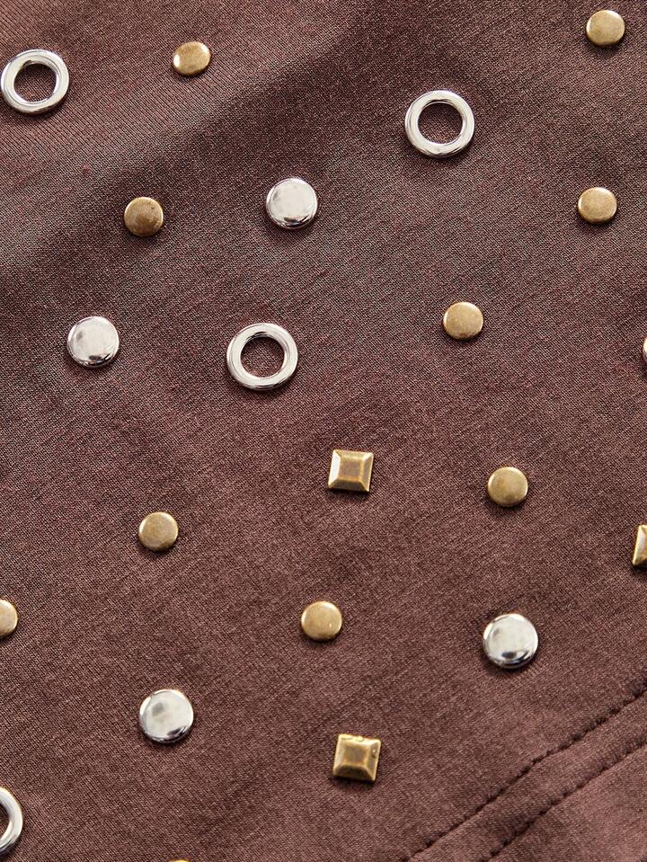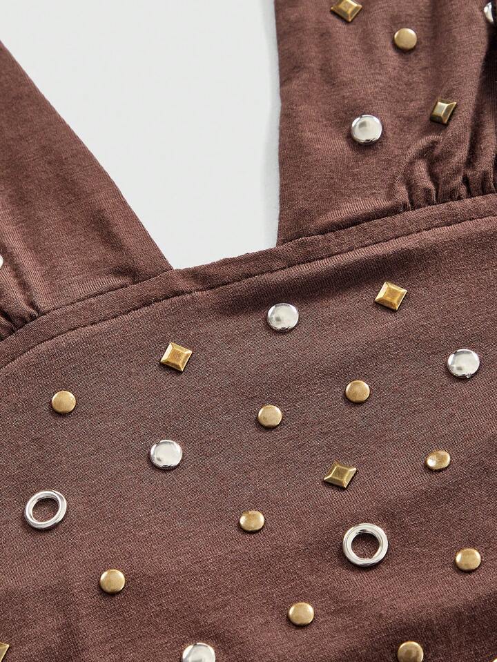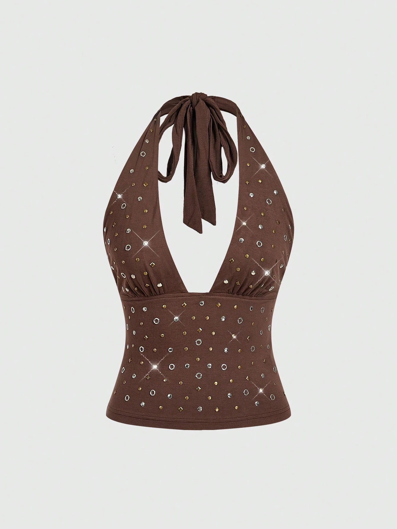 Grunge Punk Débardeur femme Y2K rétro sexy à col ras-du-cou, moulant, avec rivets et paillettes, dos nu