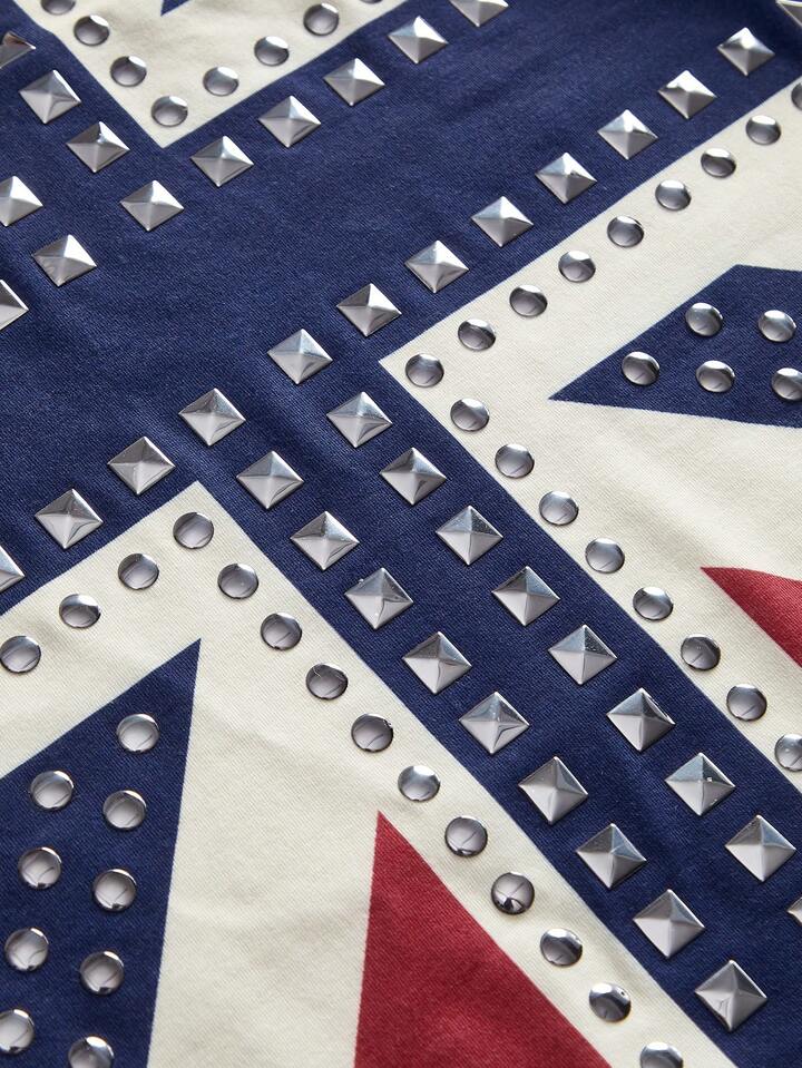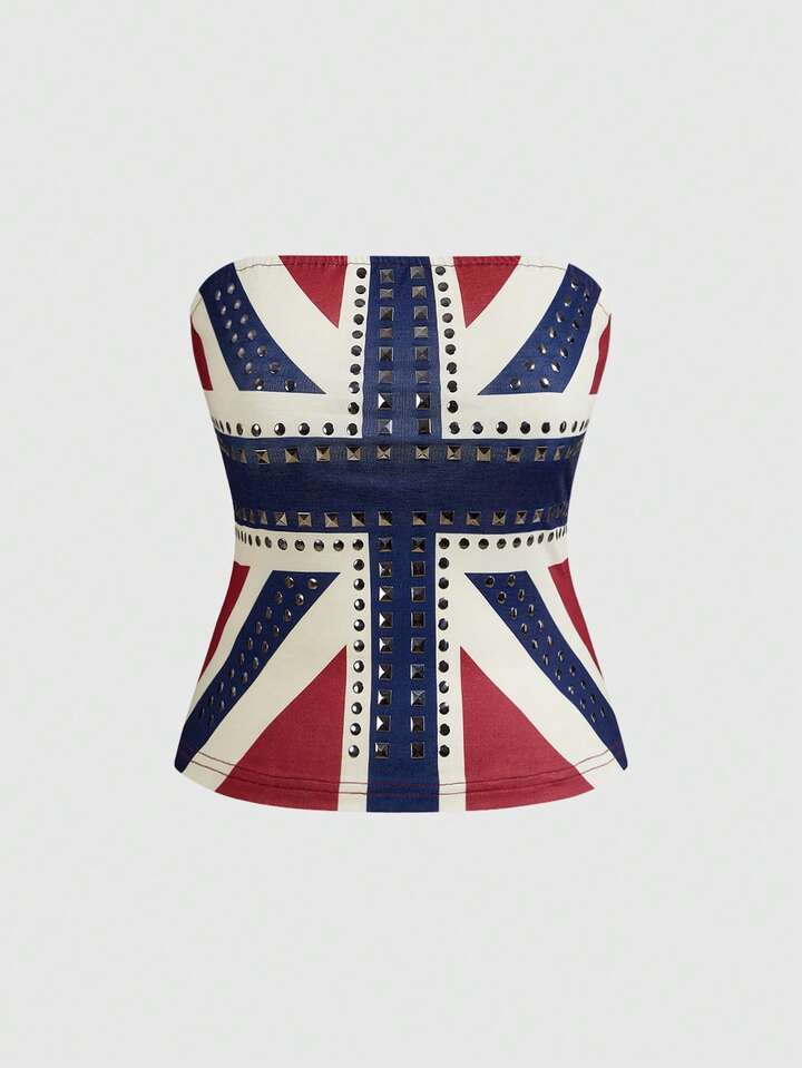Grunge Punk Top bandeau avec imprimé du drapeau du Royaume-Uni et strass, style rétro Y2K pour femmes