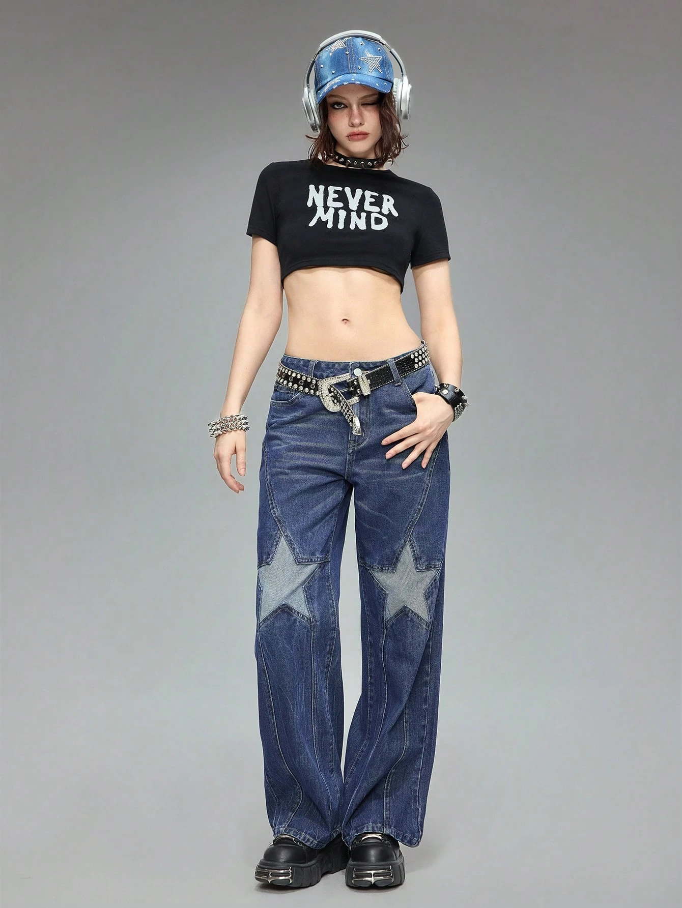 Grunge Punk Jean coupe droite ample taille ultra basse style Baddie des années 2000 à motif étoiles