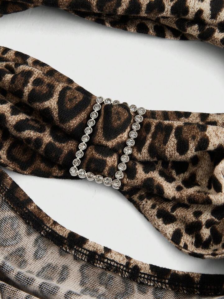 Grunge Punk Hauts court à encolure drapée sans manches pour femme avec taille froncée et imprimé léopard rétro Gyaru Y2K