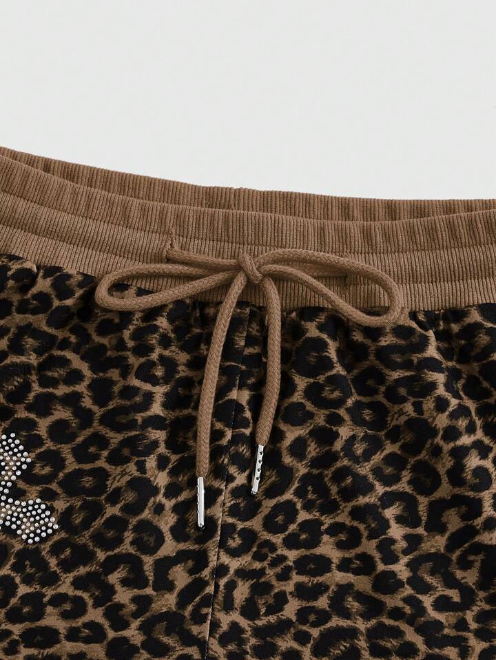 Grunge Punk Shorts mini skinny à taille nouée imprimé croix et léopard, style streetwear casual gyaru Y2K