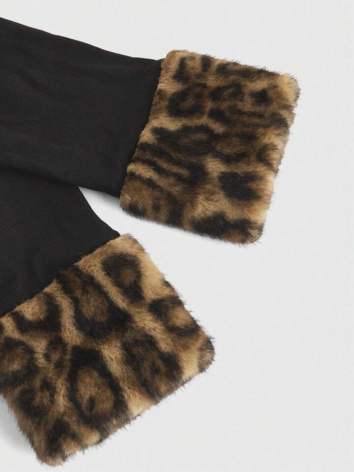 Grunge Punk Top court style patchwork guépard surdimensionné et duveteux avec manches, dans le style Gyaru Y2K