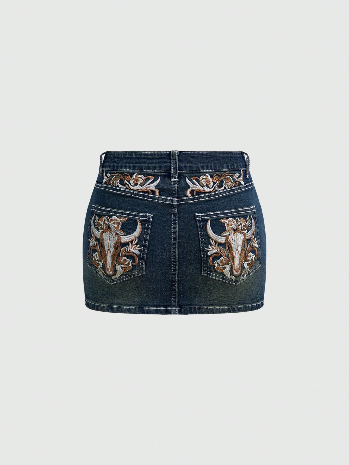 Grunge Punk Jupe mini avec poche et broderie florale découvrant le ventre style Y2K rétro (inclut les leggings)