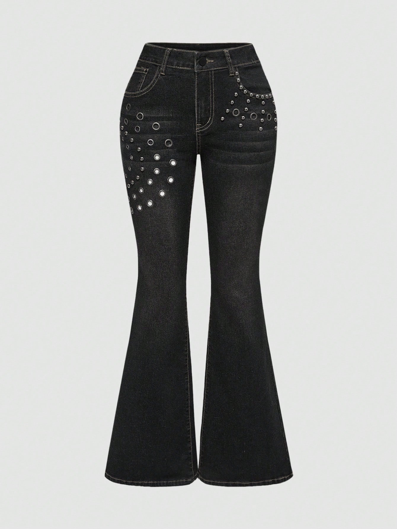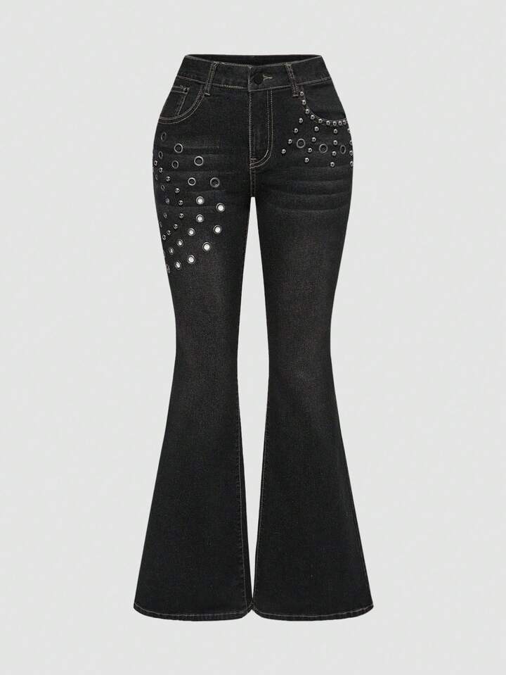 Grunge Punk Jeans évasés à taille basse rétro sexy Y2K, jeans pour femmes au style punk rock et métal, coupe ajustée