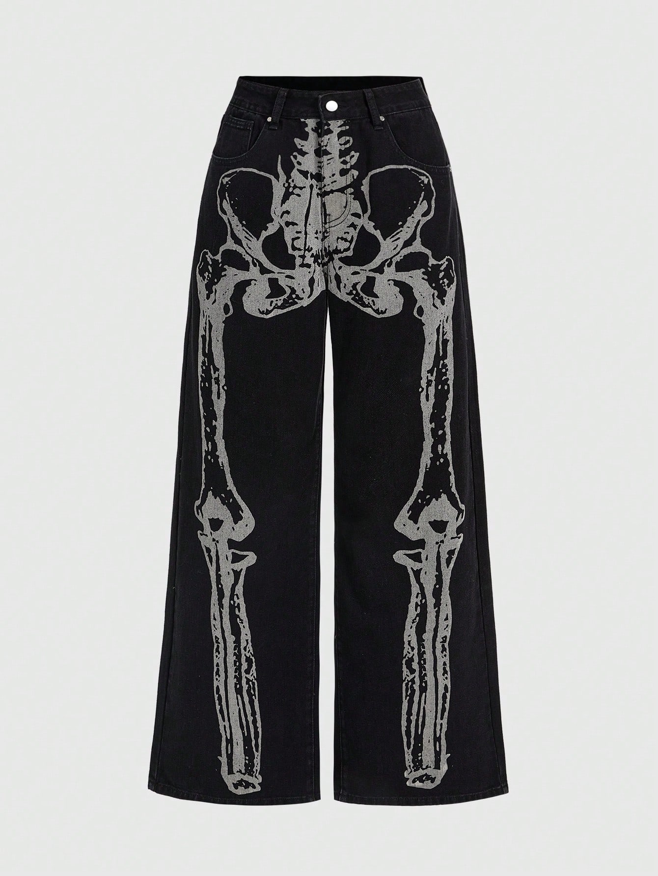 Grunge Punk Jeans à taille basse, jambes larges et lâches avec imprimé crâne rétro sexy Y2K
