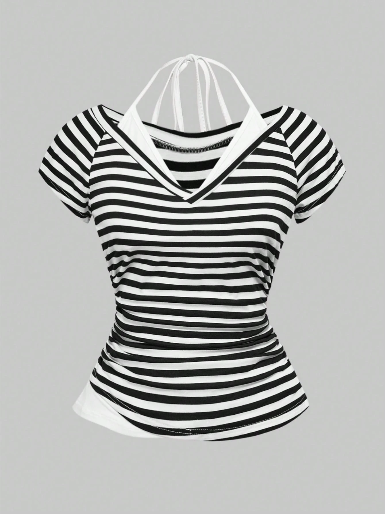 Grunge Punk T-shirt femme à col en V, nœud papillon, rayé, contrastant, style Y2K sexy, crop top, printemps