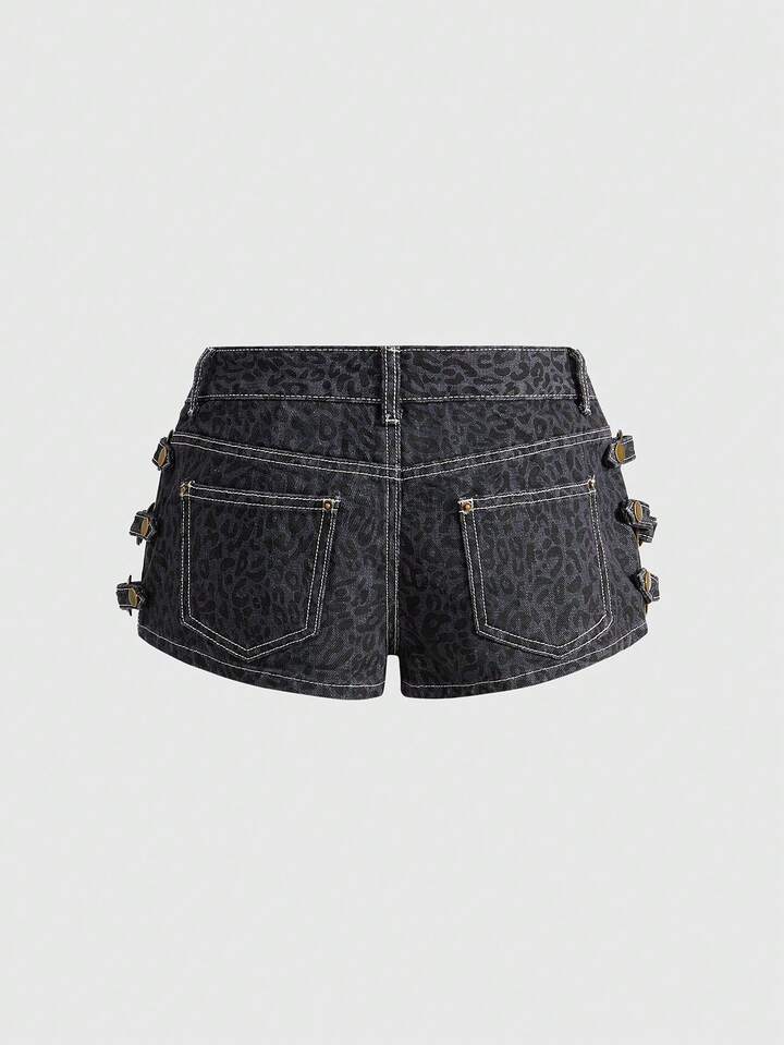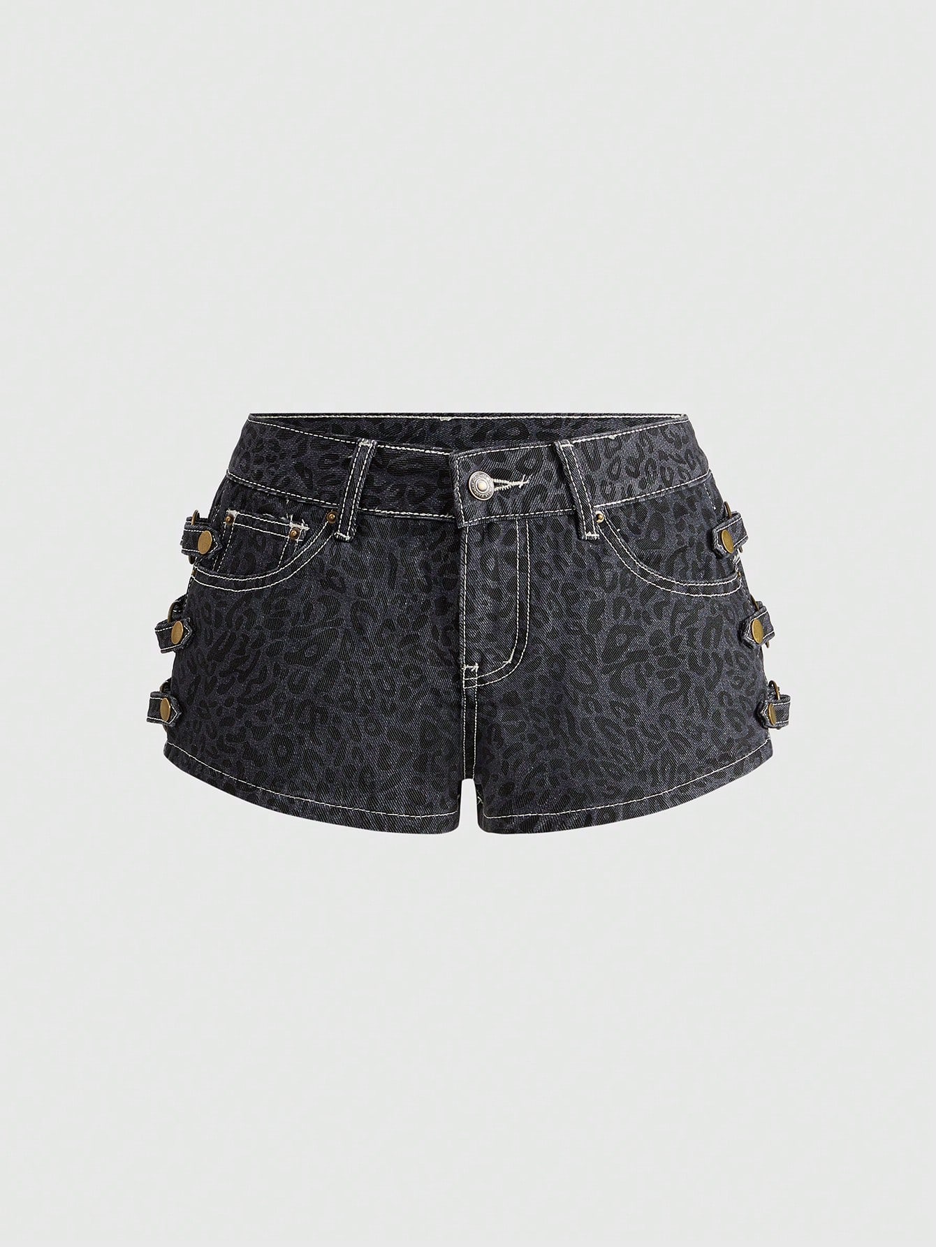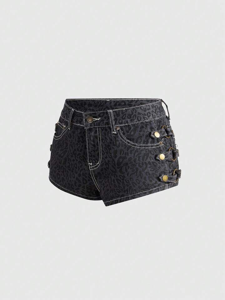 Grunge Punk Short en jean ultra taille basse sexy imprimé léopard style Y2K