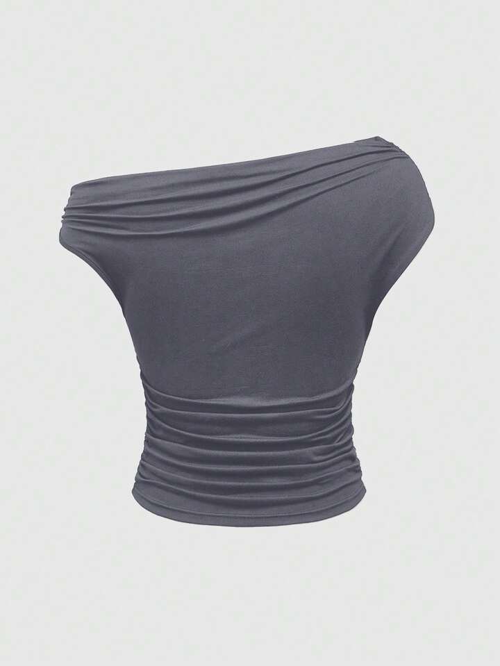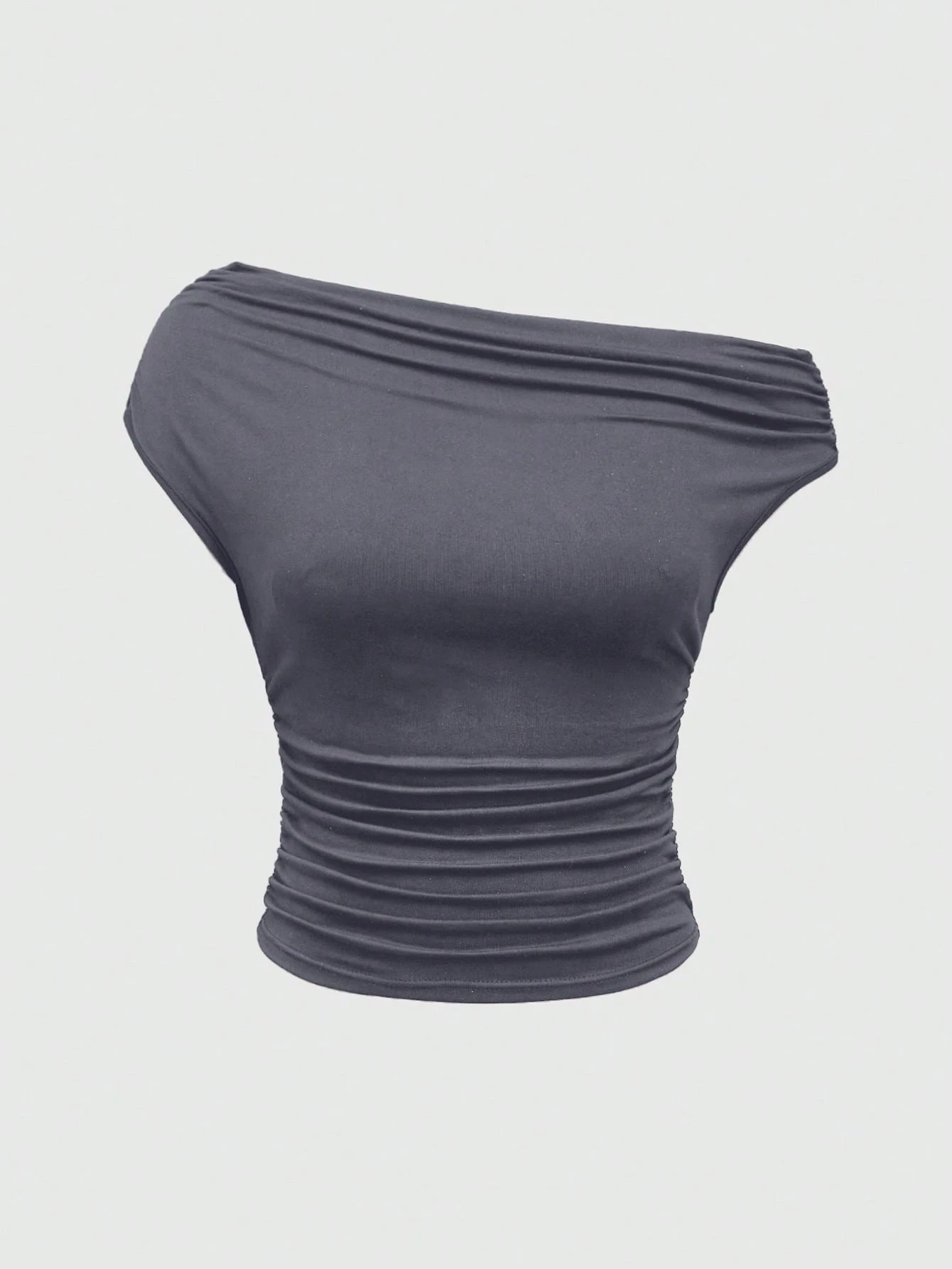 Grunge Punk T-shirt femme à épaules serrées plissées, style rétro Y2K Shibuya Girl Millennium