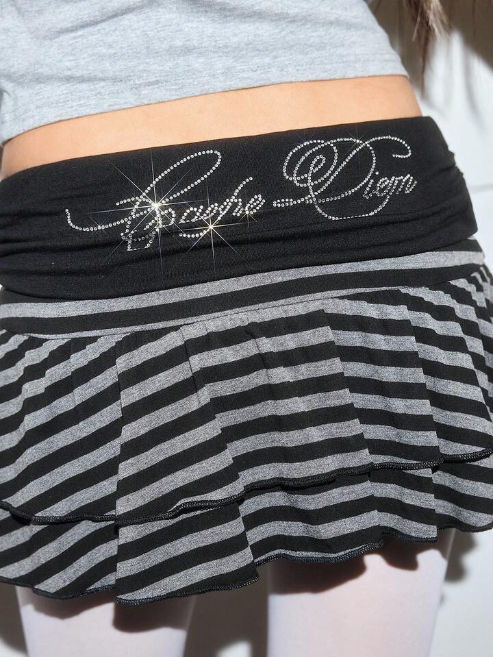 Grunge Punk Jupe mini à taille basse avec rayures, ornée de strass, style A-line Y2K