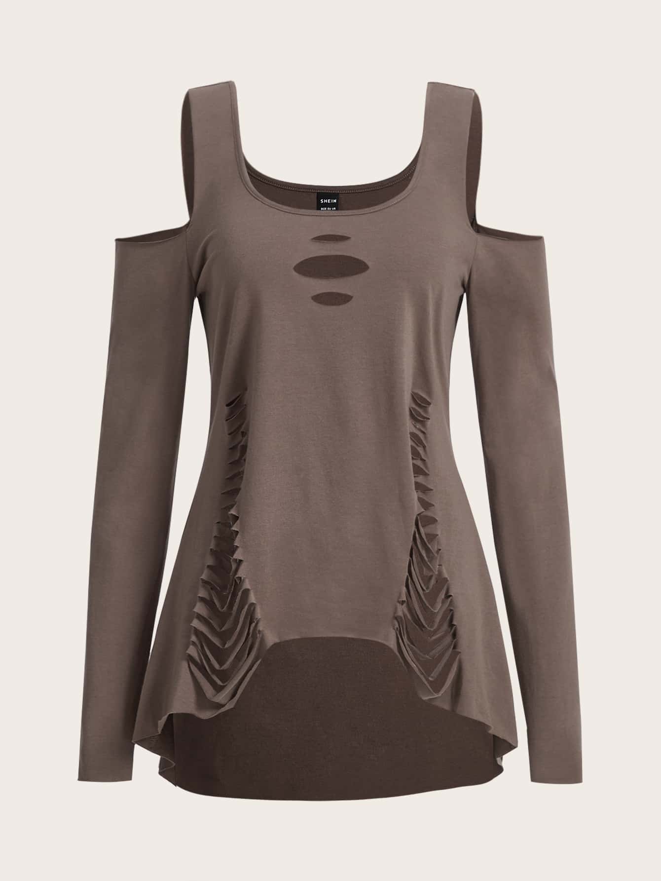 T-shirt déchiré à épaules dénudées