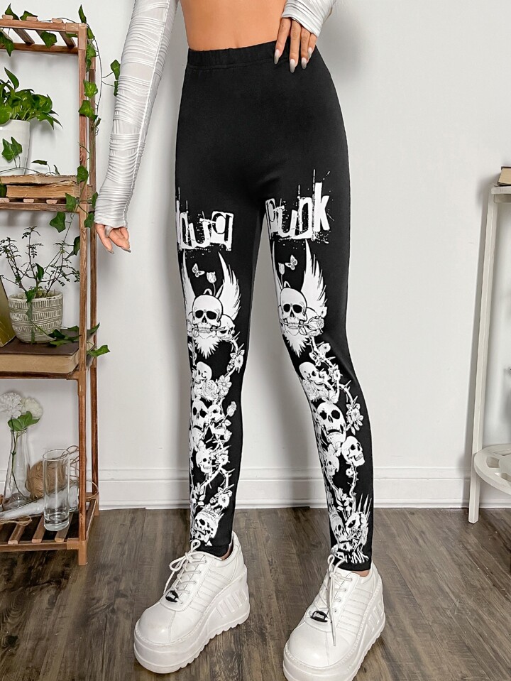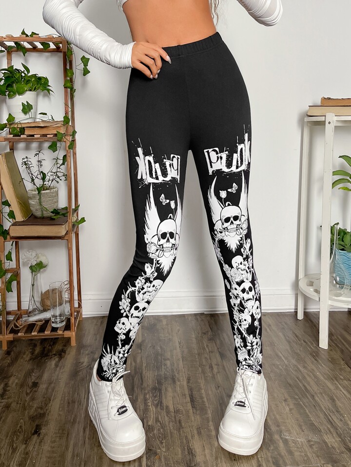 Legging grunge à imprimé tête de mort
