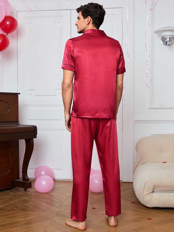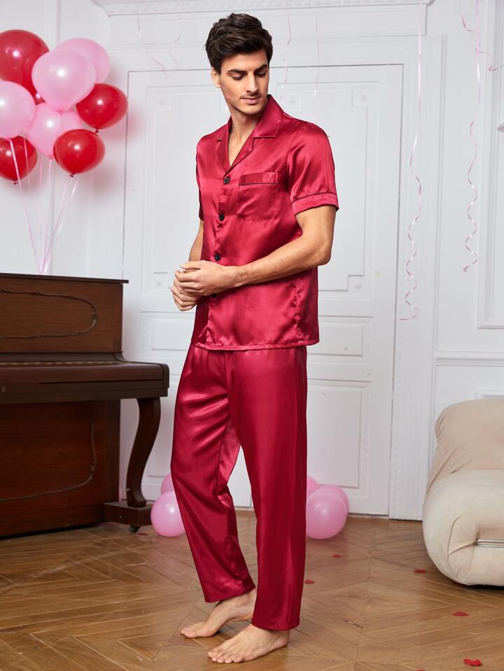 Homme Haut de pyjama en satin & Pantalon à domicile