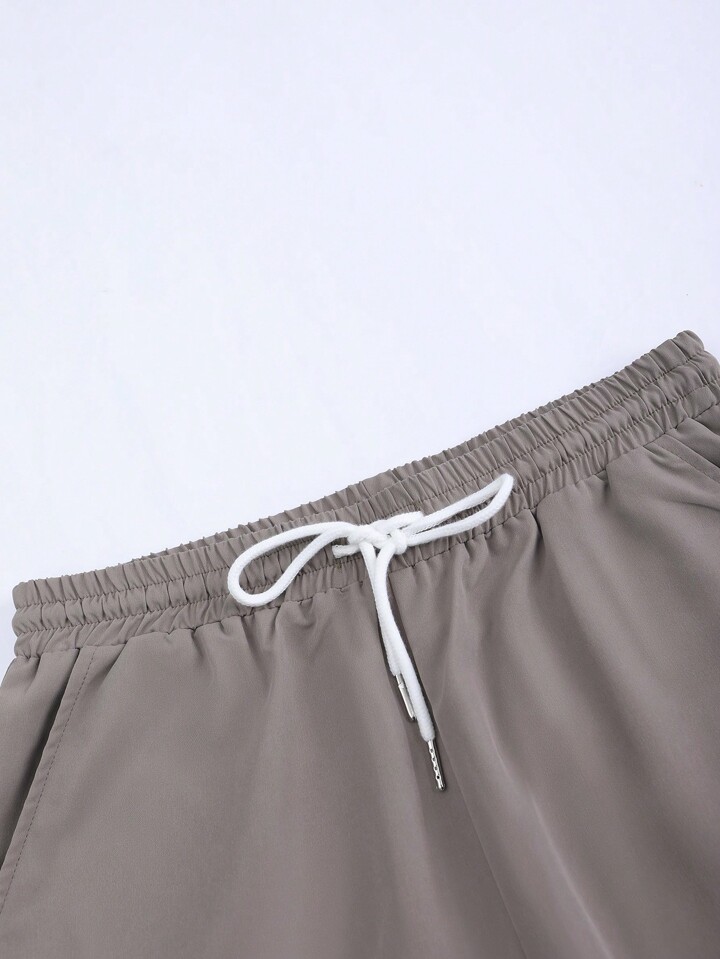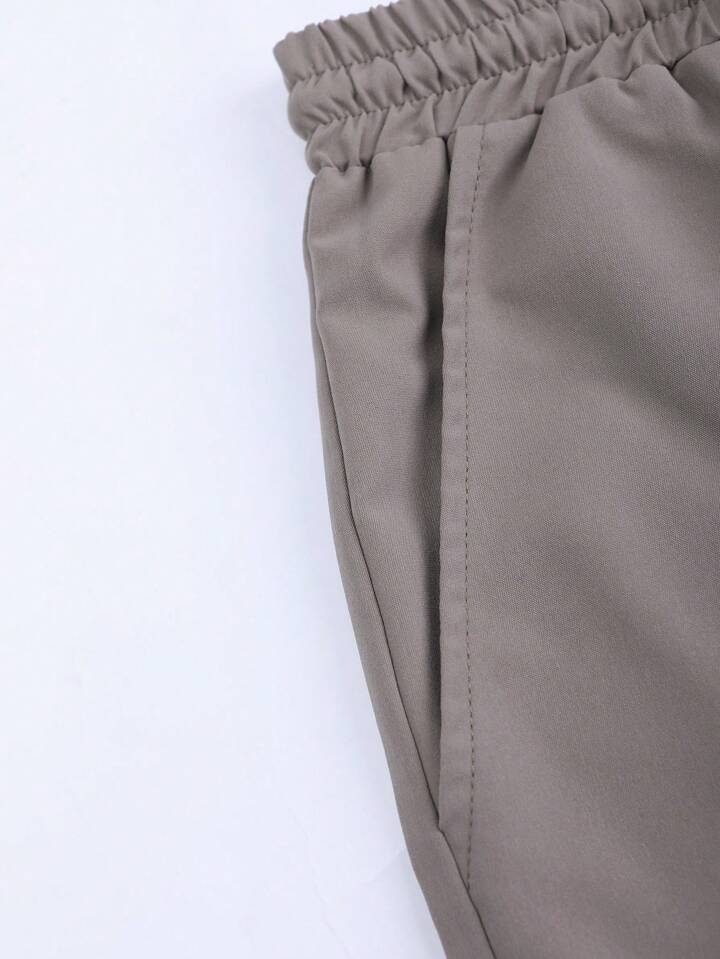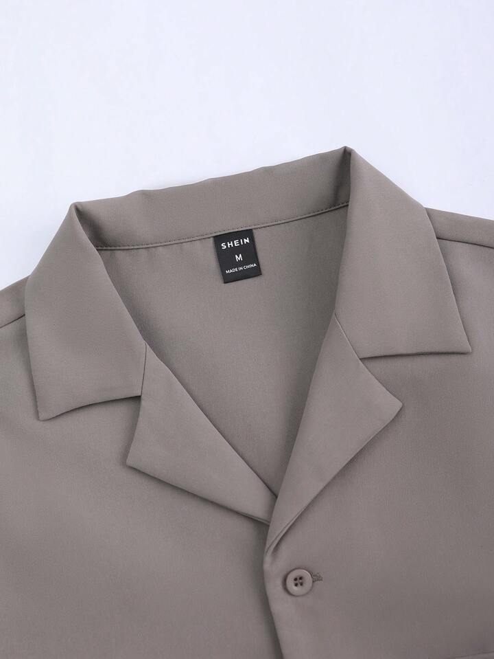 1 pièce Chemise à rabat unie pour homme et 1 pièce Short à cordon de serrage à la taille, pour le mari, tenues confortables