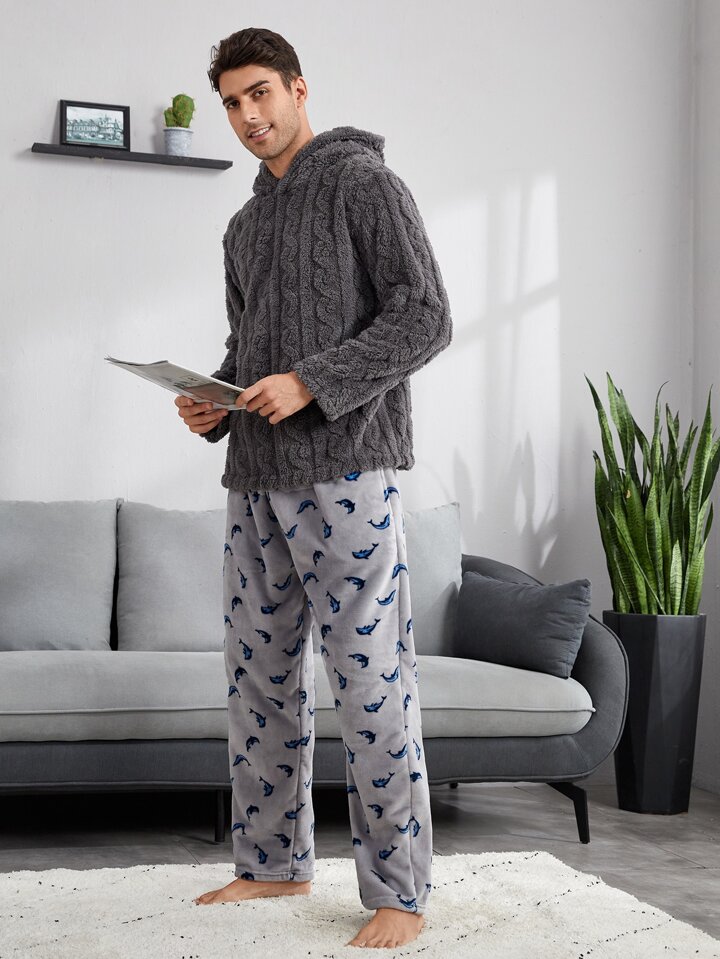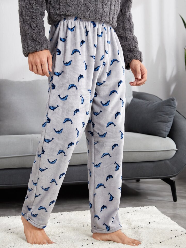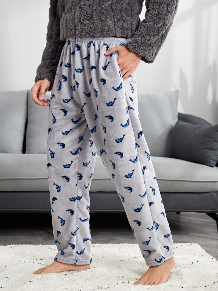 Homme Pantalon de pyjama à motif de baleine en flanelle