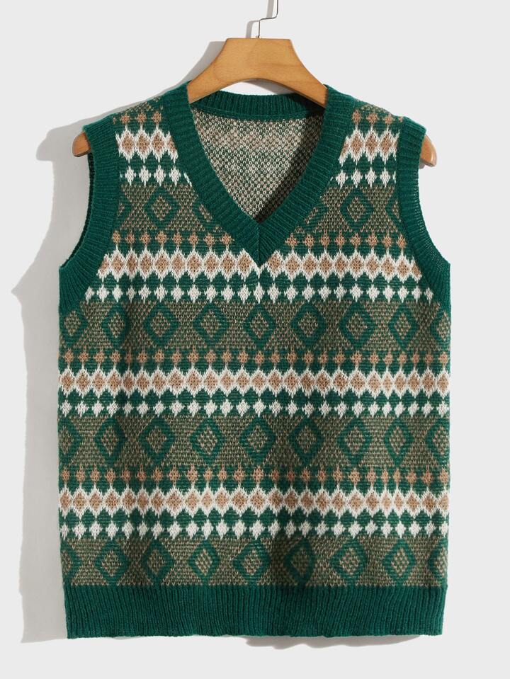 Homme Pull sans manches à motif losange