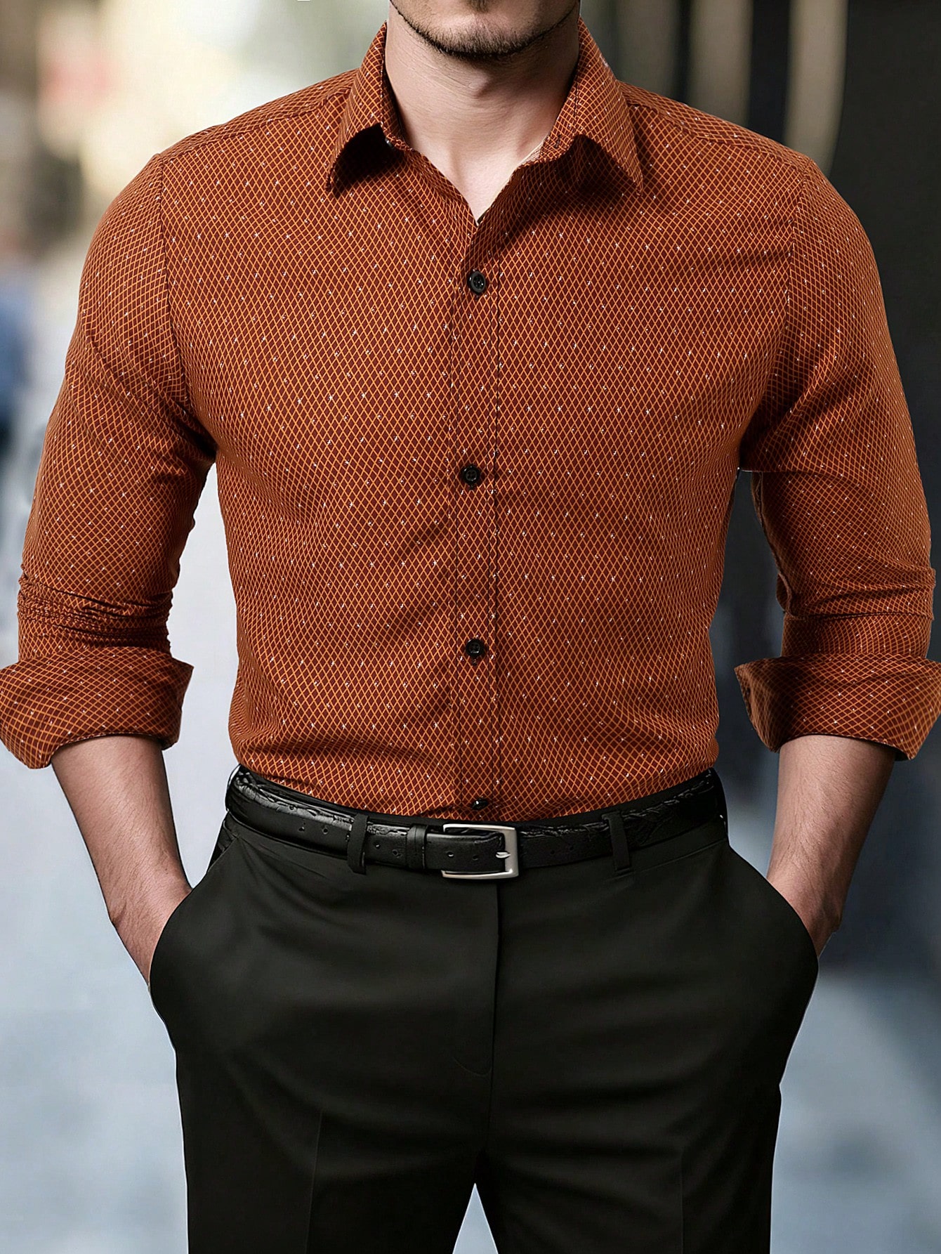 Chemise décontractée/d'affaires à manches longues et à carreaux, à simple boutonnage pour hommes