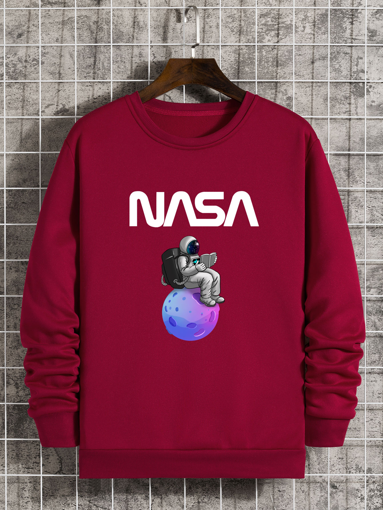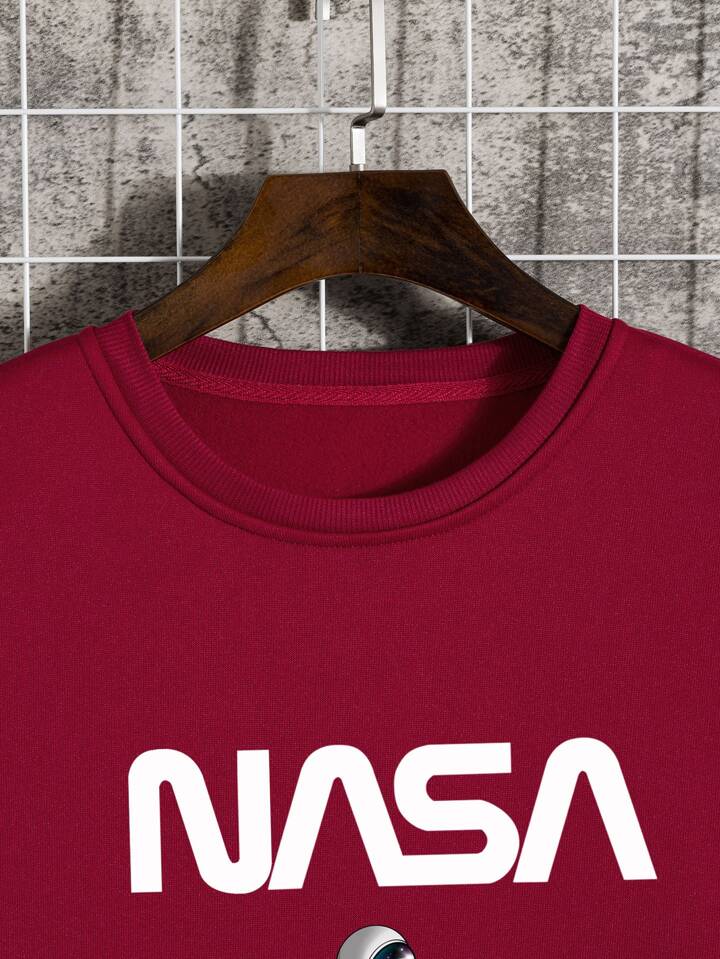Homme Sweat-shirt à motif d'astronaute et de lettre graphique à doublure thermique