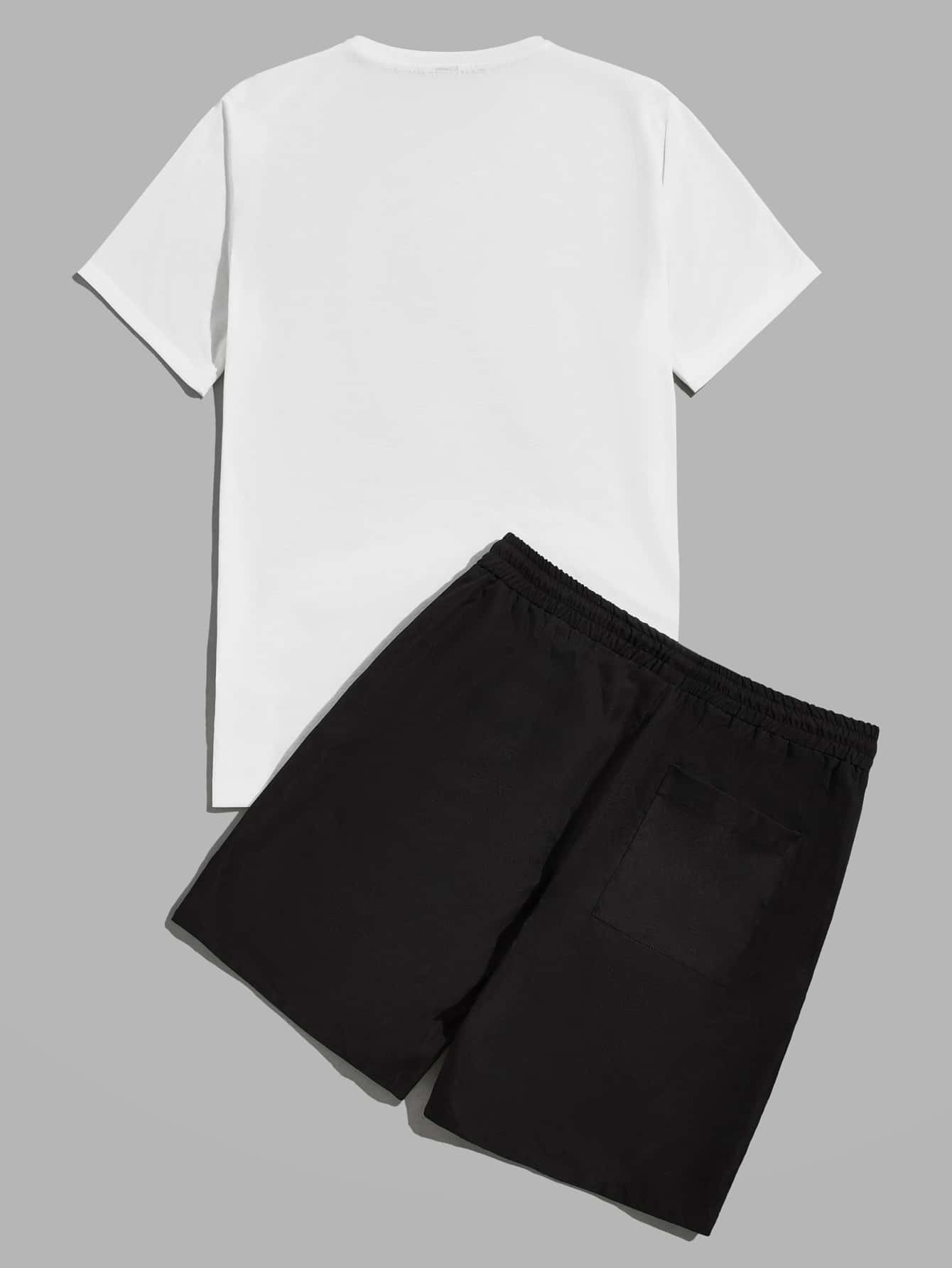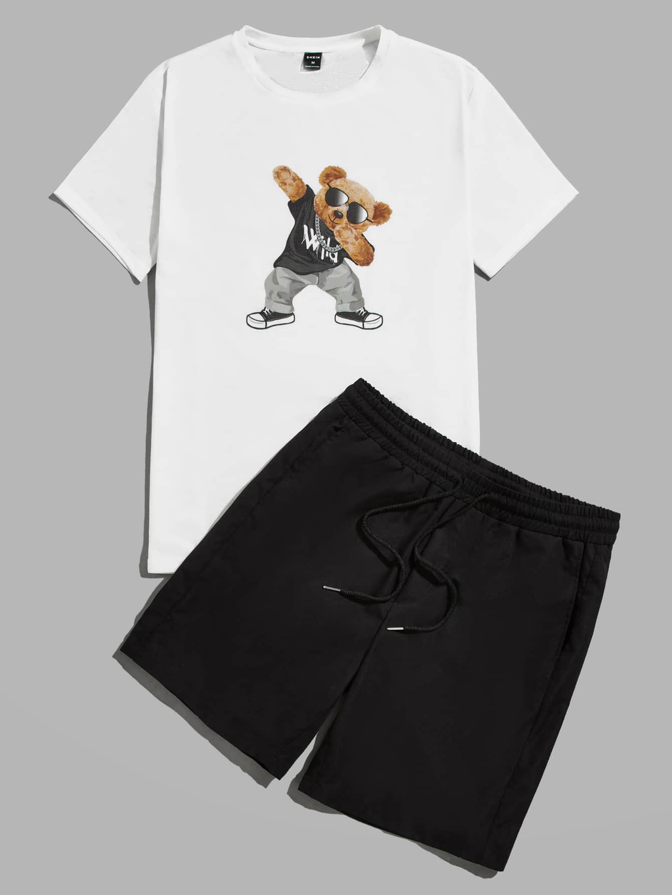 Homme T-shirt à motif d'ours et de lettre & Short à cordon