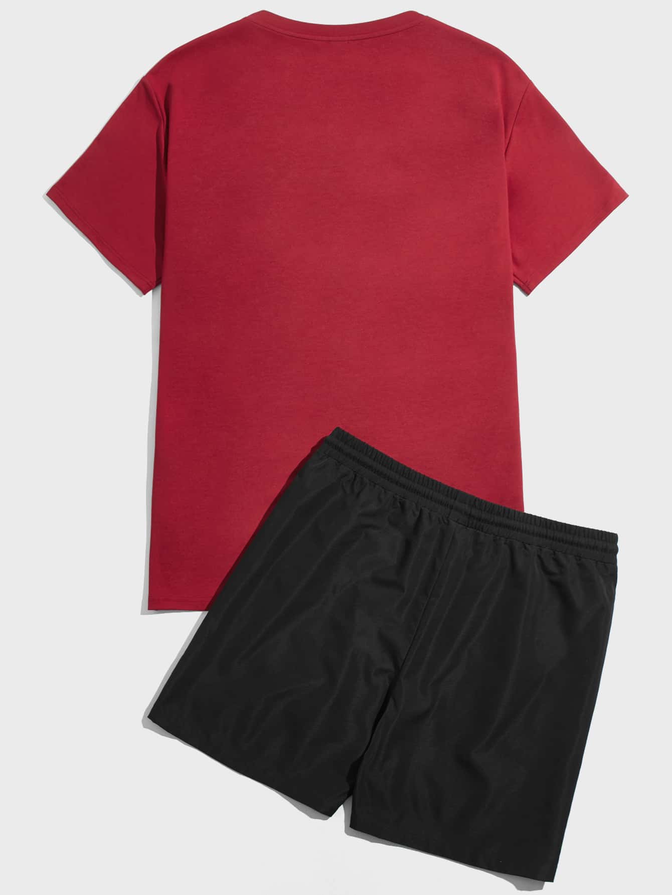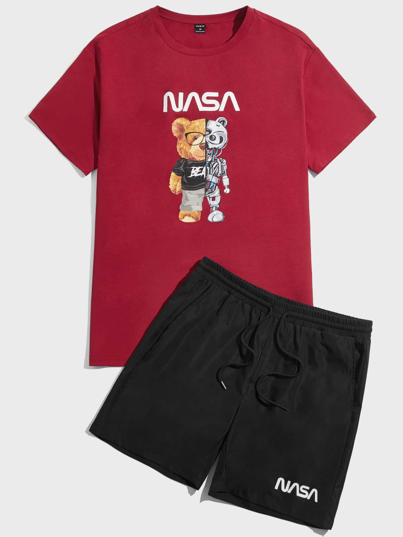 Homme T-shirt Ours Et Lettre & Short À Cordon