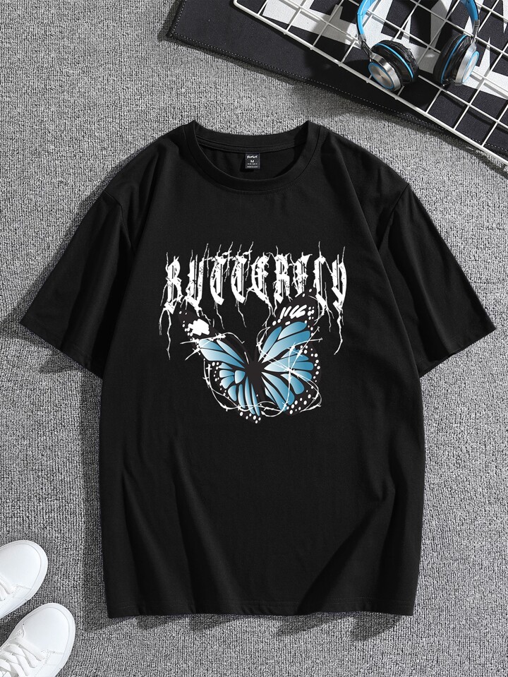 Homme T-shirt à imprimé papillon