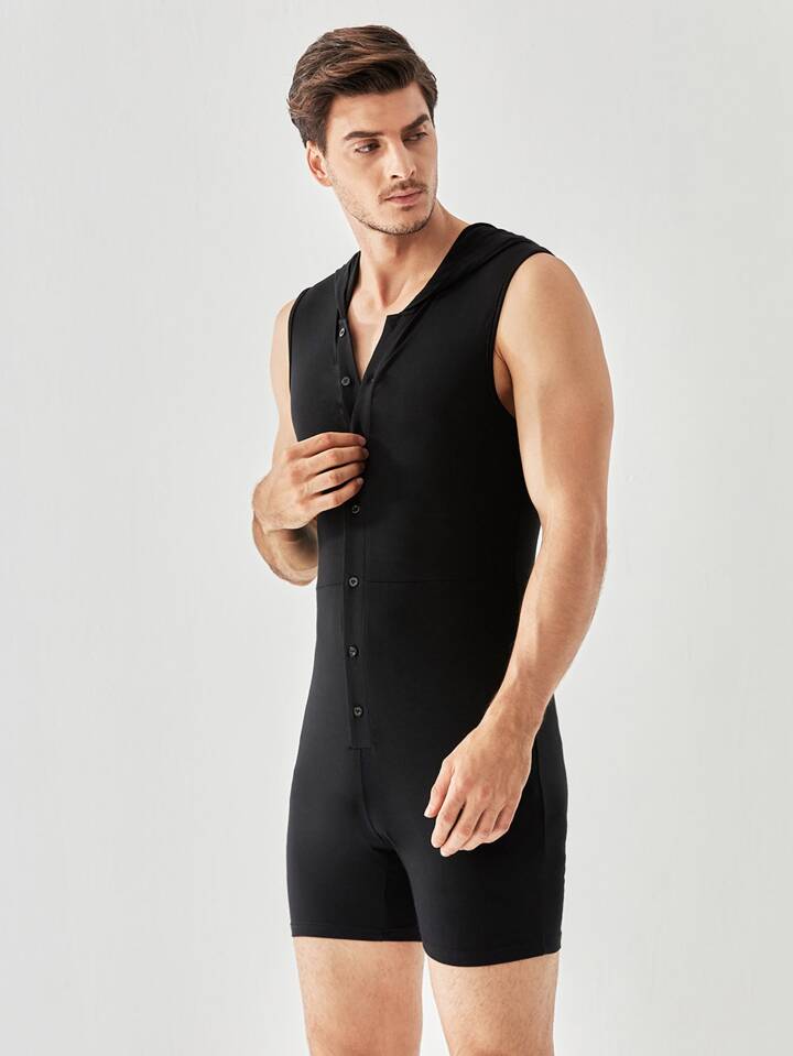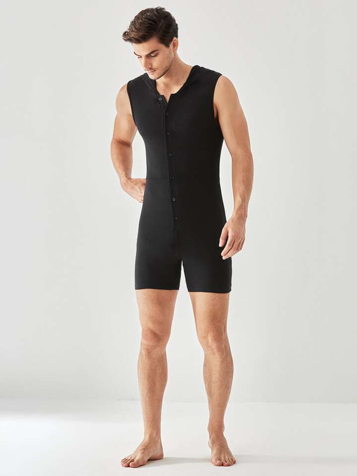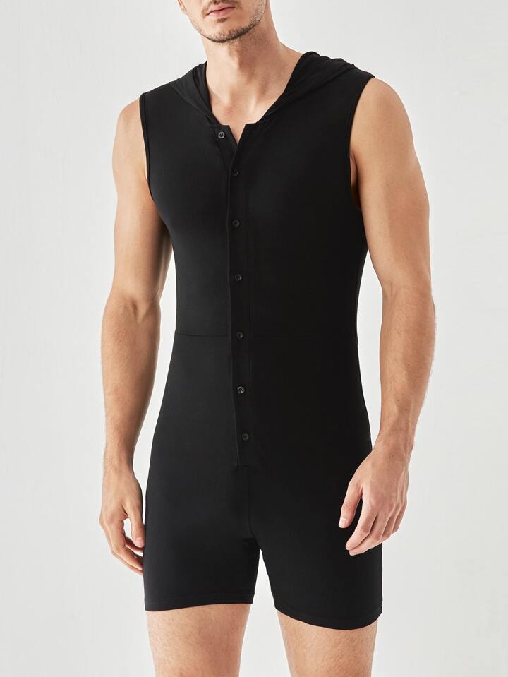Homme Combishort de nuit à bouton à capuche