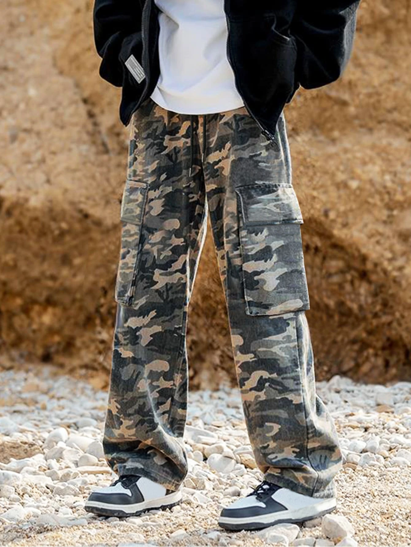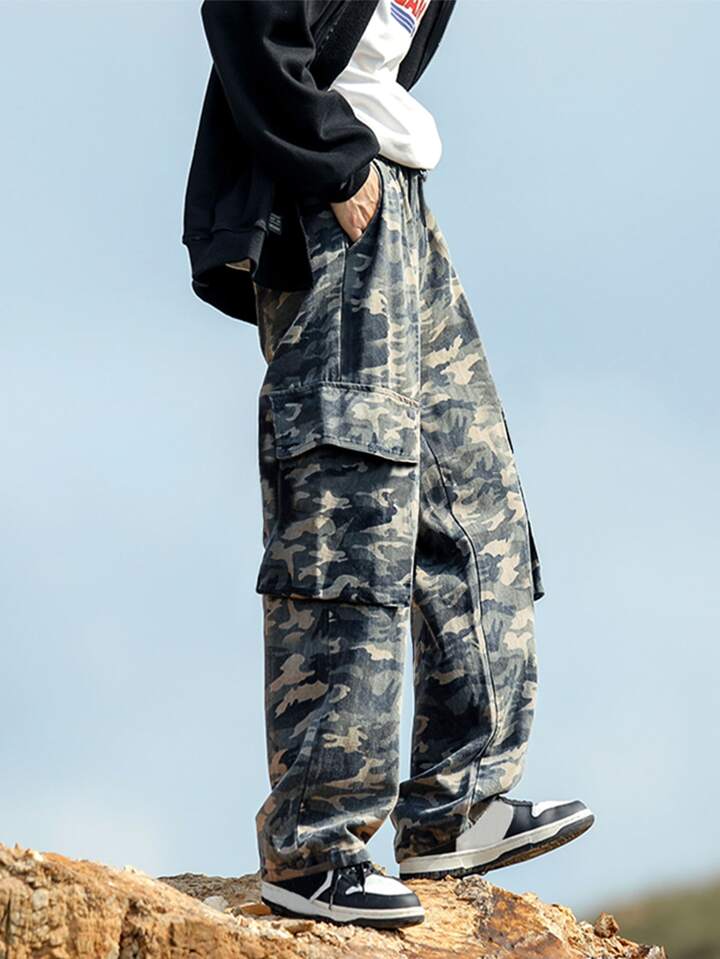 Homme Pantalon cargo à imprimé camouflage poche à rabat