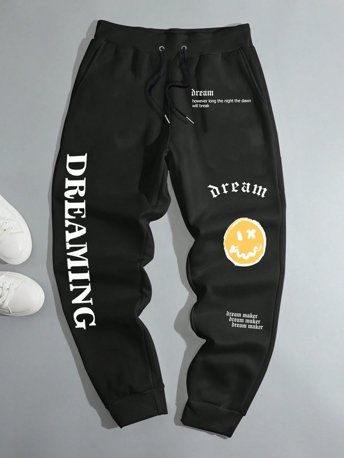 Pantalon De Survêtement Ample Imprimé Dessin Animé Et Slogan Pour Hommes Avec Cordon De Serrage À La Taille
