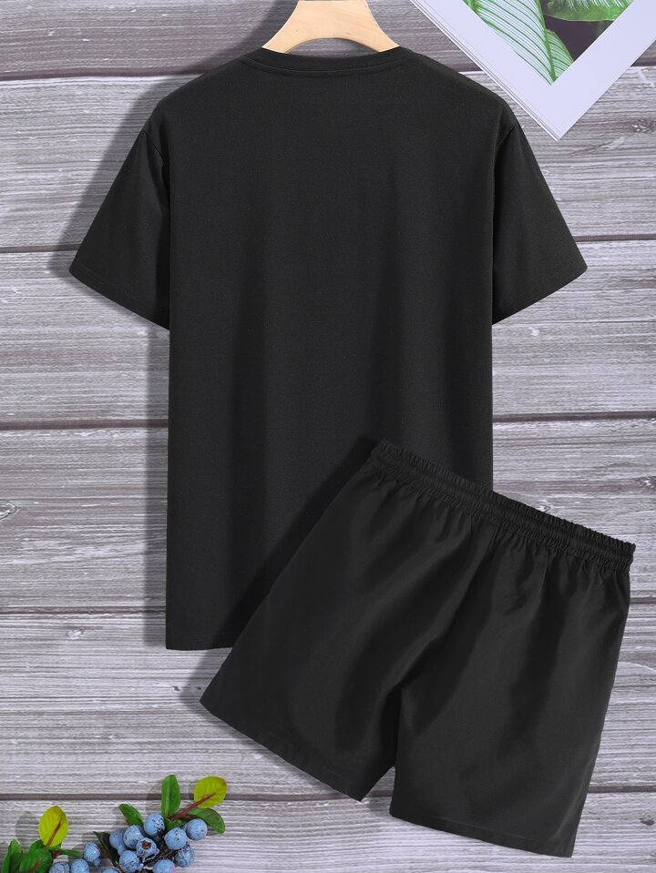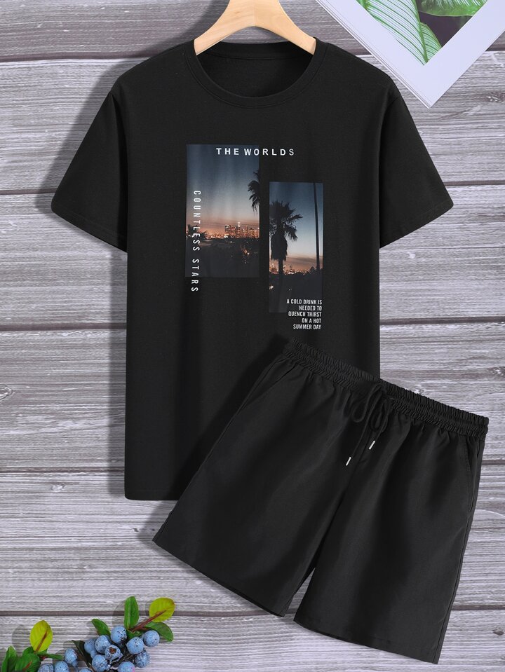 Homme T-shirt à motif de cocotier et slogan & Short à cordon