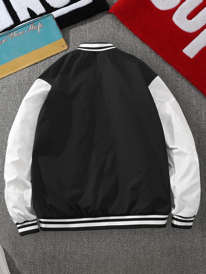 Veste Collège Pour Homme, Style Ample, Bloc De Couleur Avec Graphique De Slogan