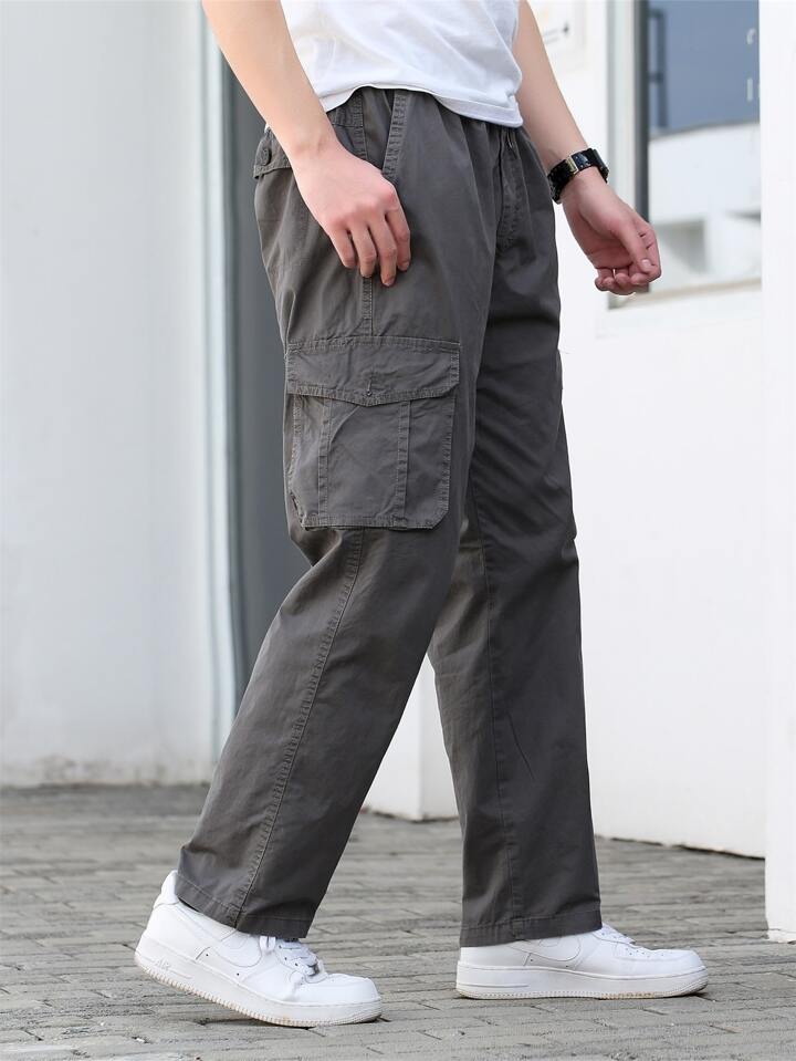 Pantalon cargo de poche à rabat unicolore pour homme, décontracté