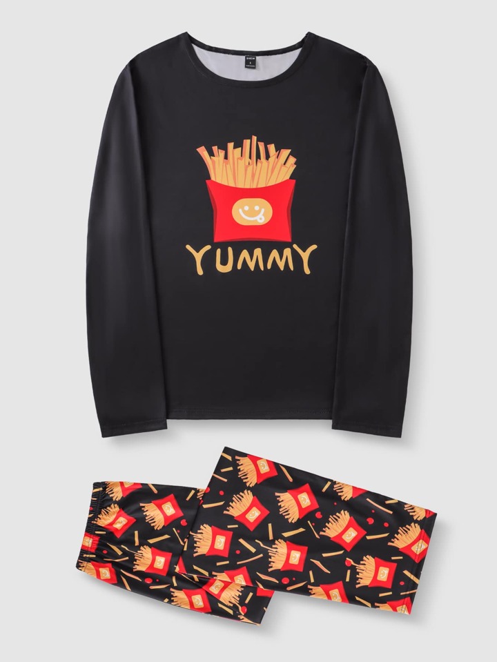 Homme Ensemble de pyjama frites et à lettres