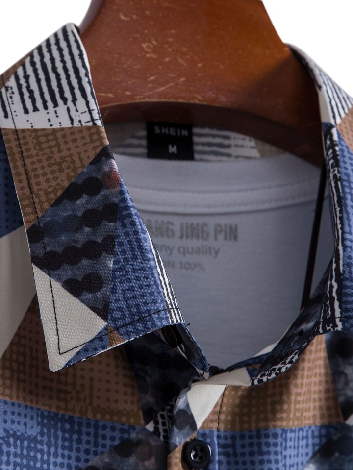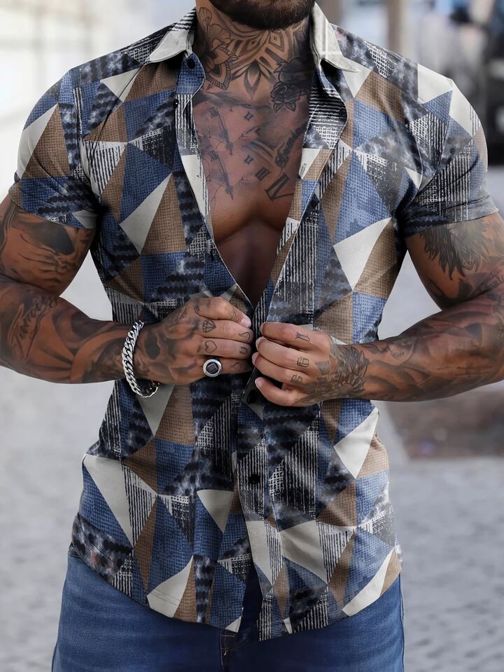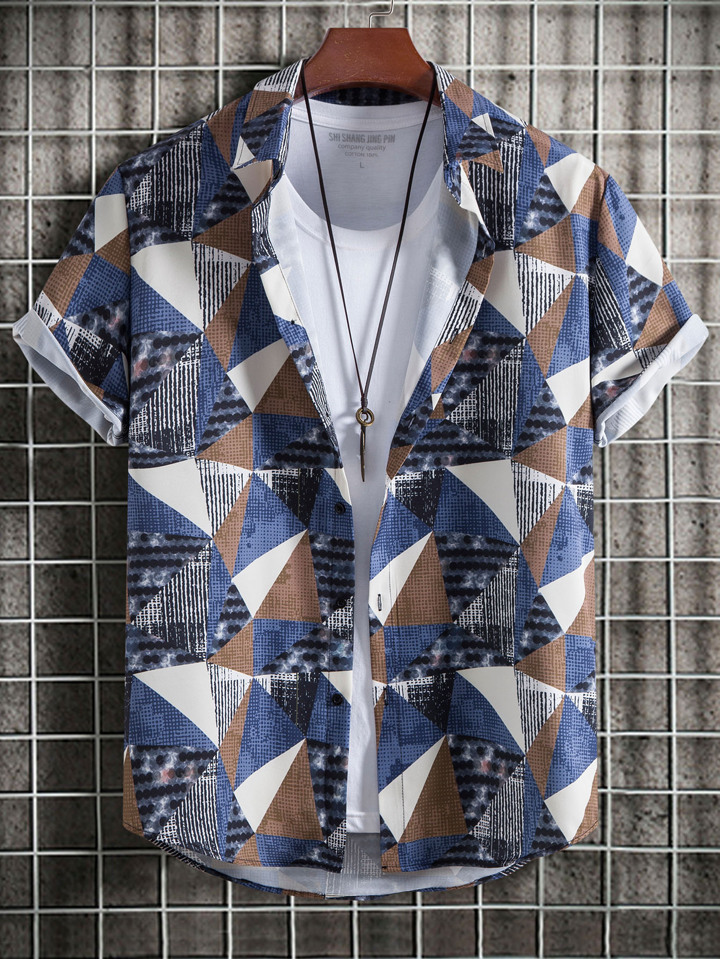 Chemise Ample Pour Homme Avec Imprimé Géométrique Sans T-shirt
