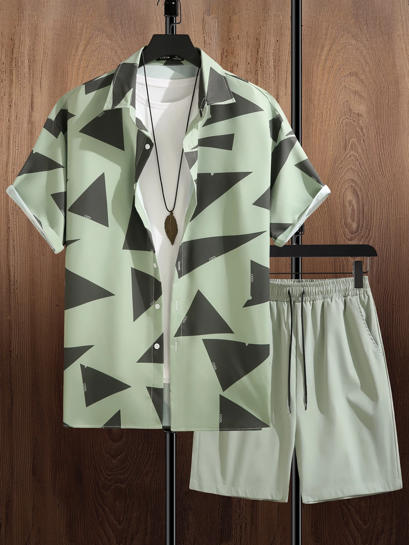 Homme Chemise à imprimé géométrique & Short à cordon(sans t-shirt)