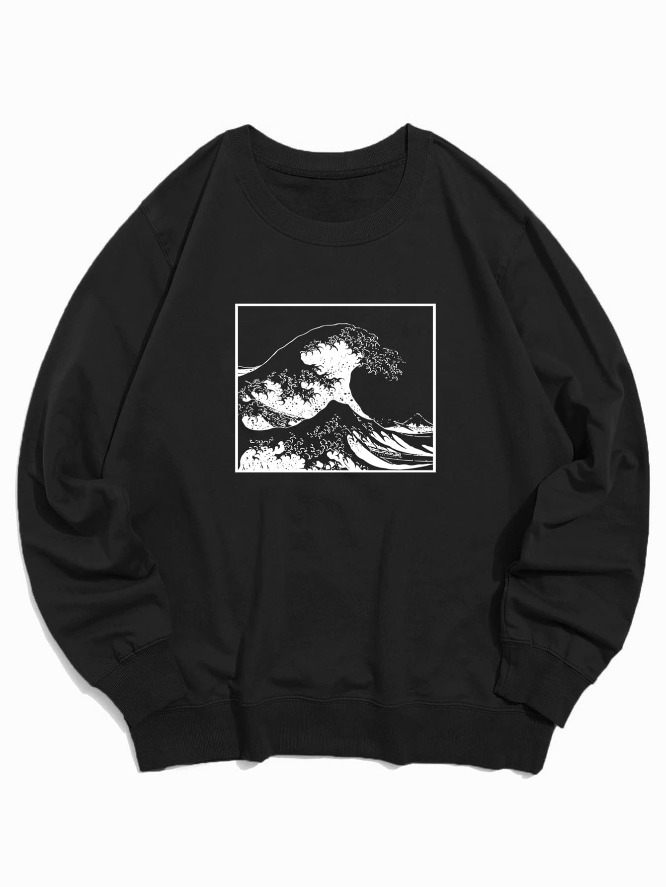 Sweat-shirt à motif de la Grande Vague de Kanagawa