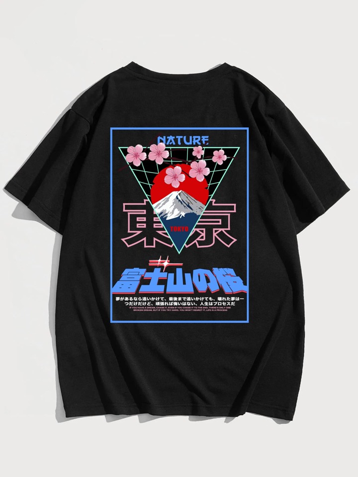 Homme T-shirt Imprimé Lettre Japonaise Et Floral
