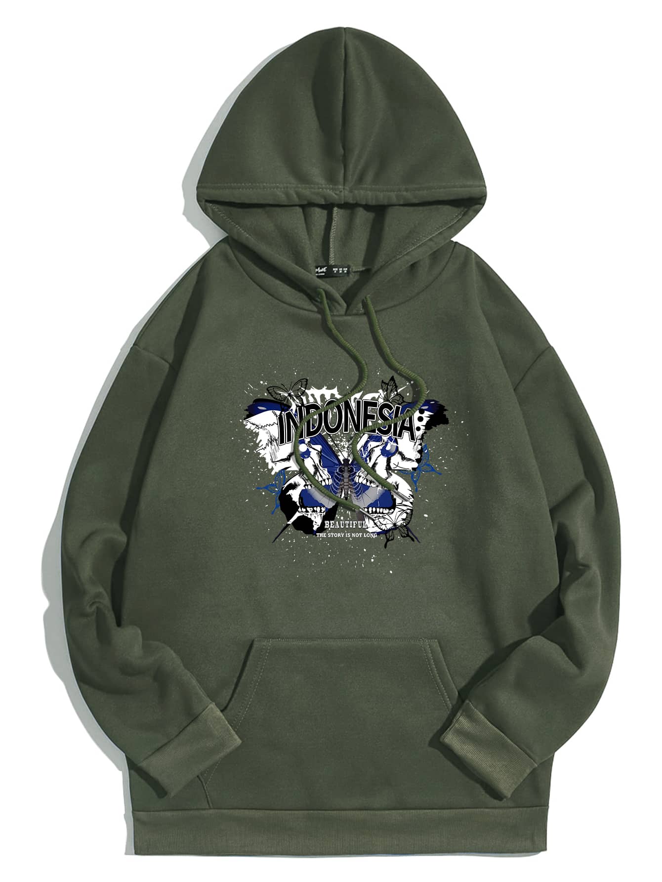 Homme Sweat-shirt à capuche thermique lettre papillon à cordon