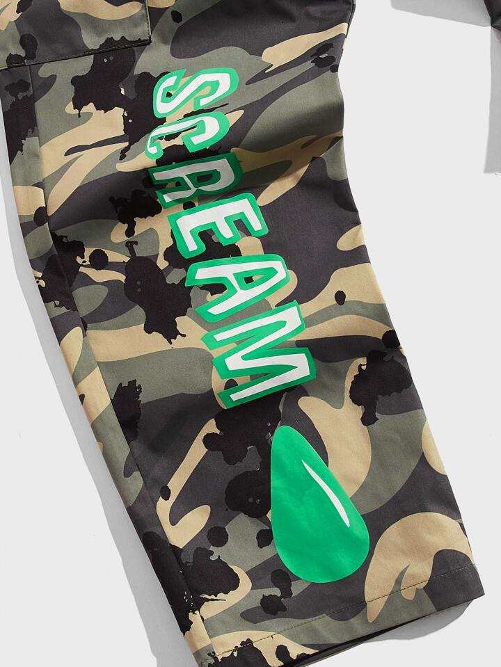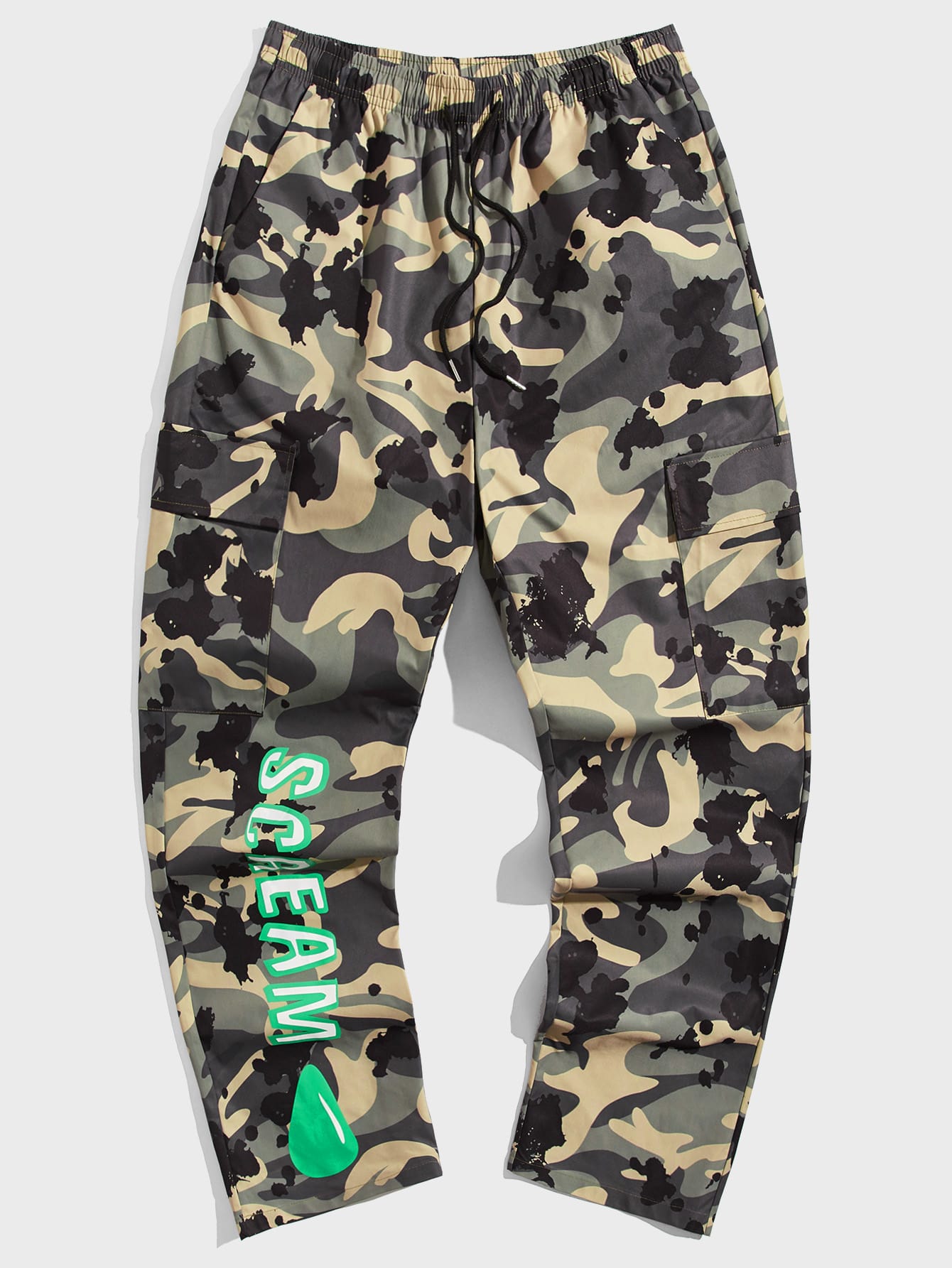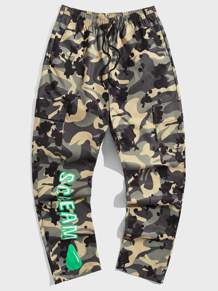 Homme Pantalon cargo à motif lettre et camouflage à cordon