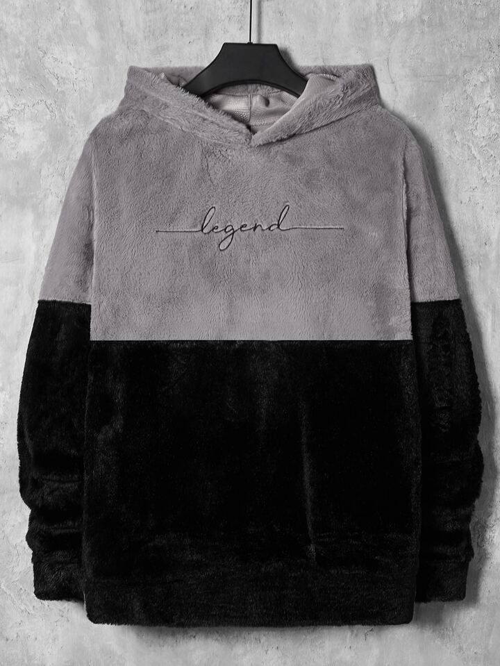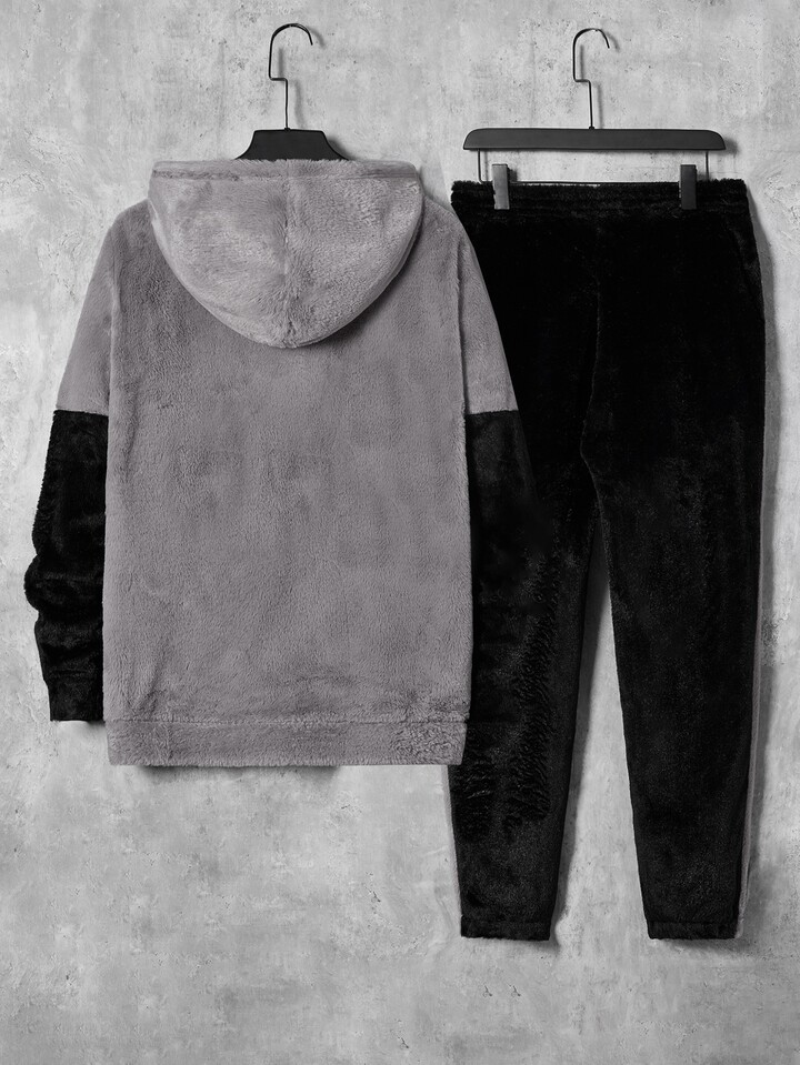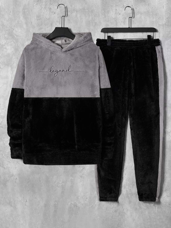 Homme Sweat-shirt à capuche en peluche à broderie à blocs de couleurs & pantalon