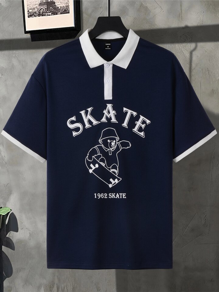 Homme Polo lettre et figure à bordure contrastante
