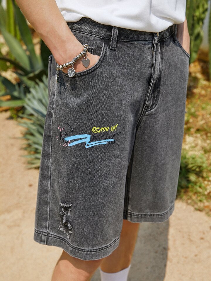 Shorts Bermuda En Jean Ample Pour Hommes Avec Graphique De Lettre